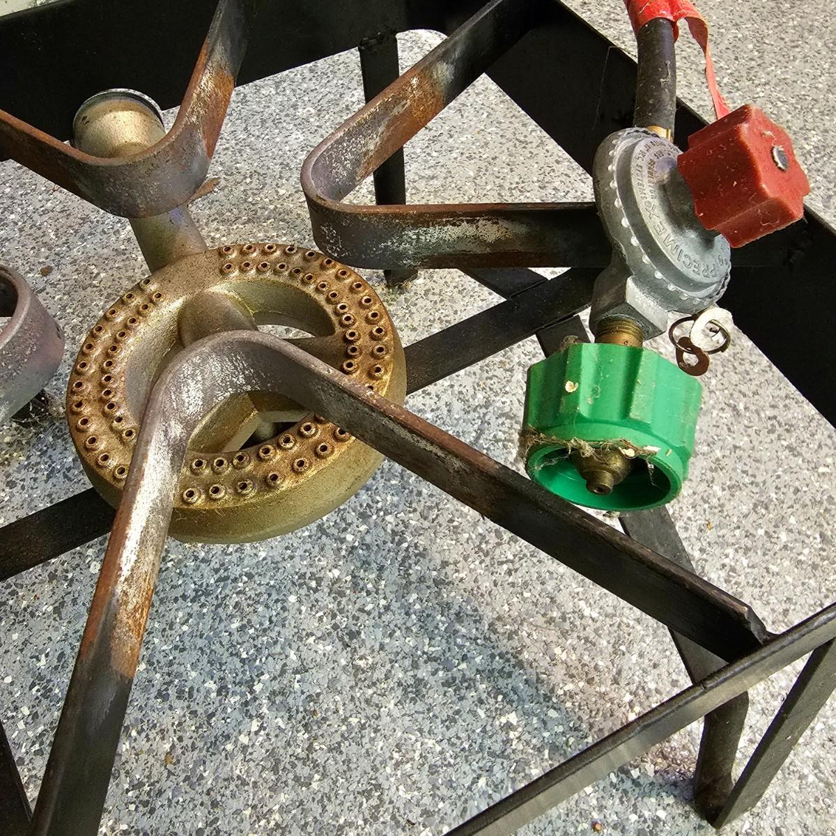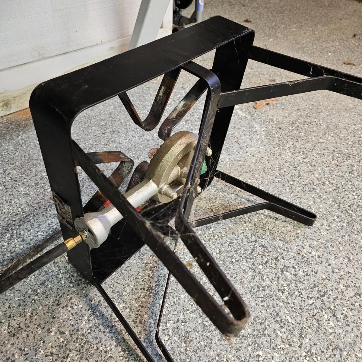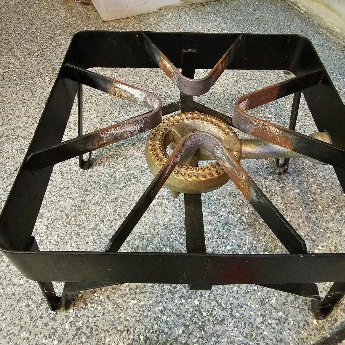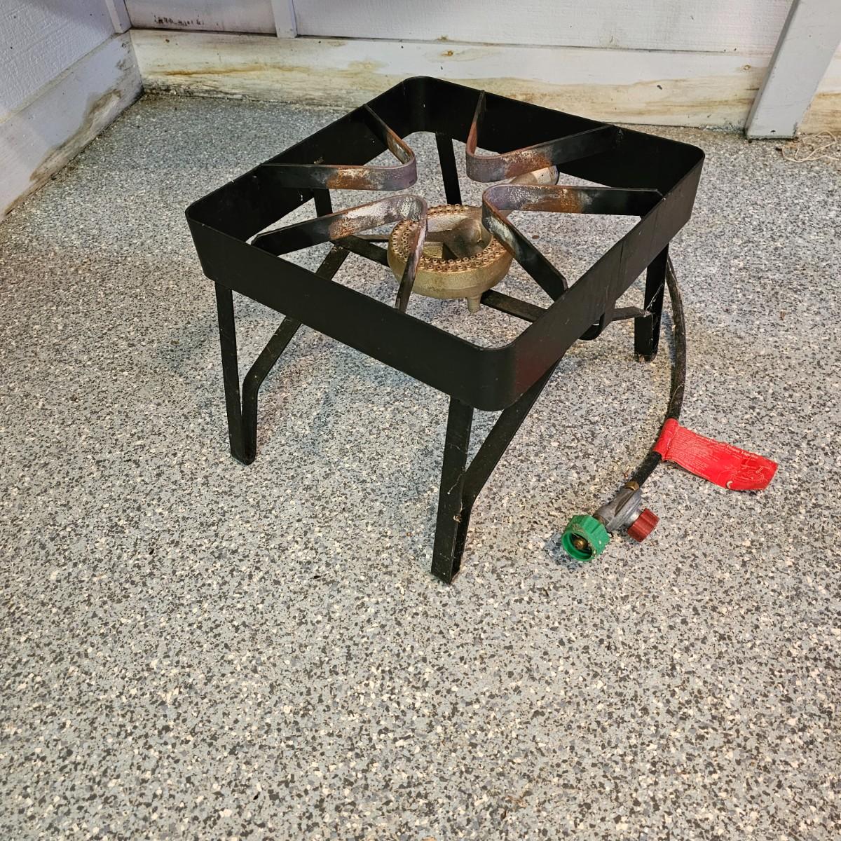 Bayou Classic brand LP burner stand. Cast iron with attached tank connector. 16" x 16" x 13"h. No tank included. See photos for details. Local pickup only.