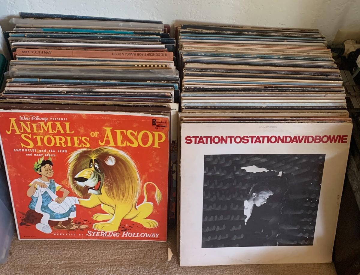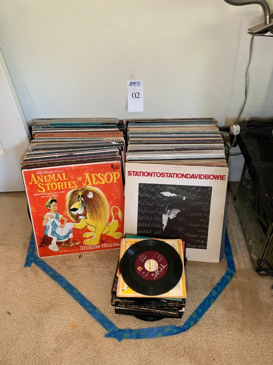 Approx 80 albums, condition unknown. Classic rock. Also small stack of 45s.
