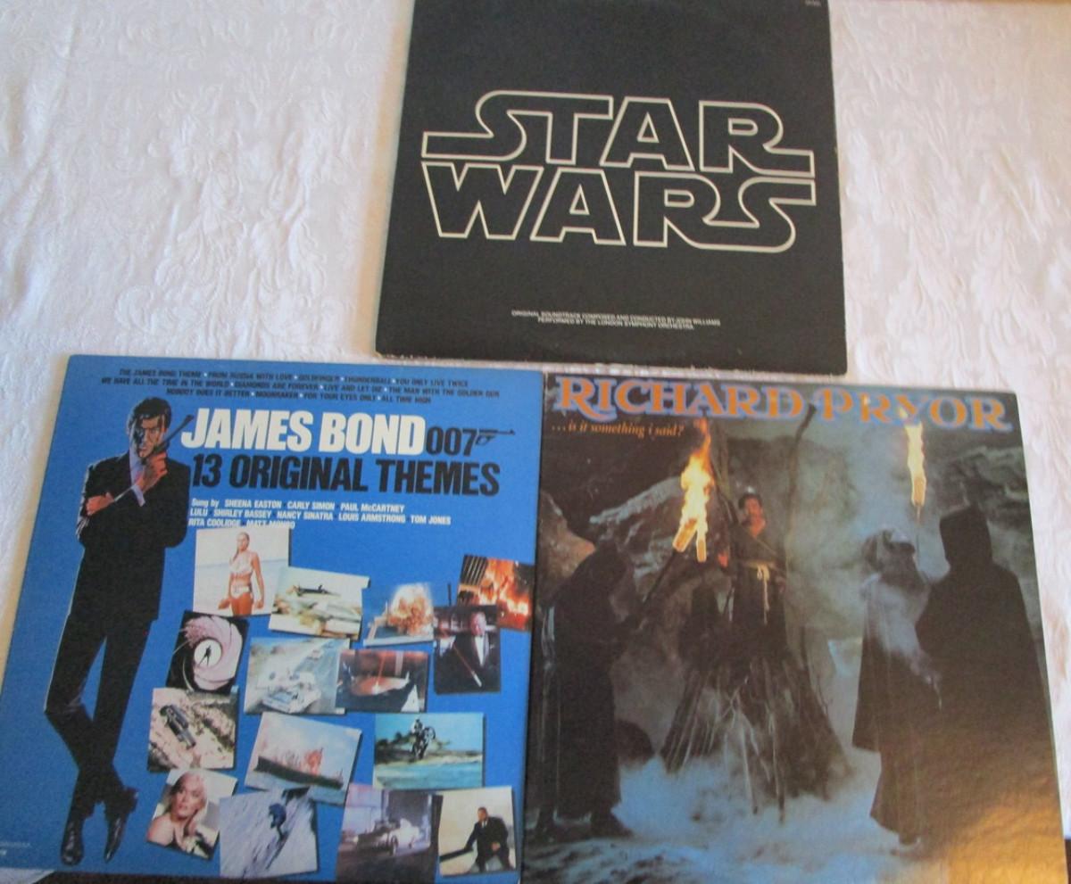 LP vinyl albums, Star Wars sound track, James Bond Themes, Richard Pryor