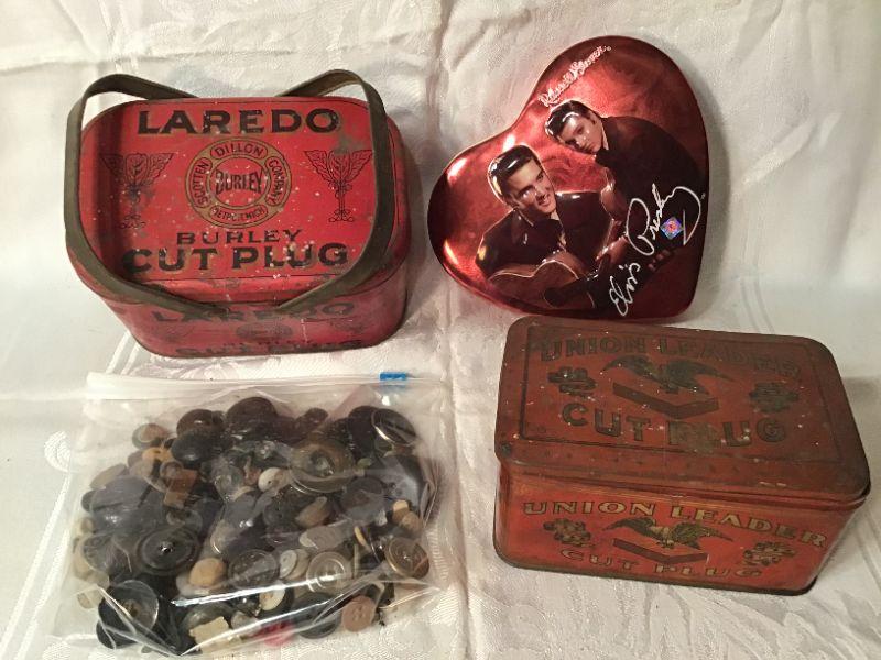 LR# 209 - Laredo, Elvis & Union Leader tins & buttons!