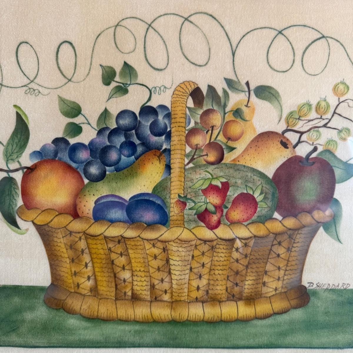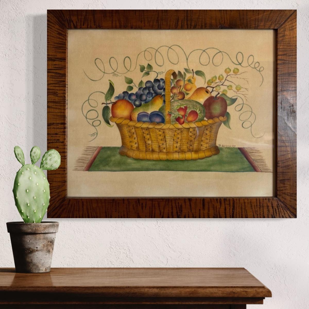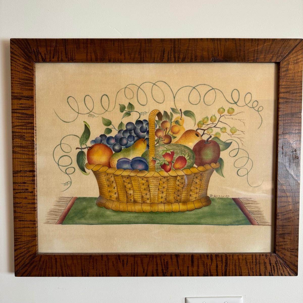 LR043 Primitive Fruit Basket Original Painting on Linen by D. Sheppard