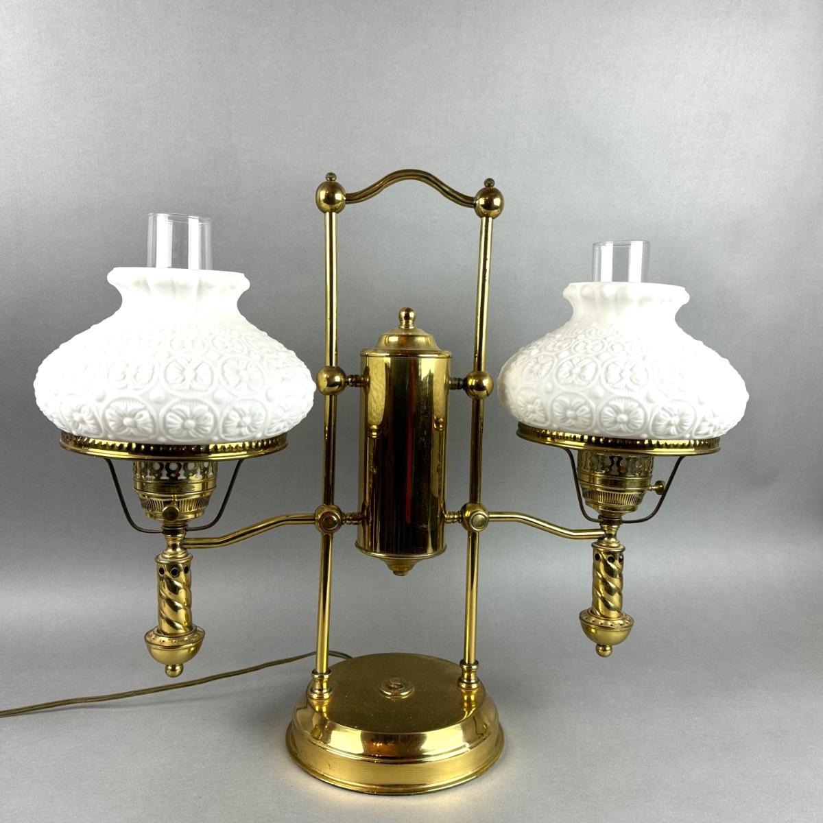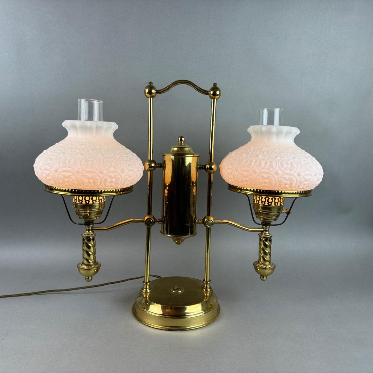 LR103 Vintage Brass Double Student Lamp with Milk Glass Shades