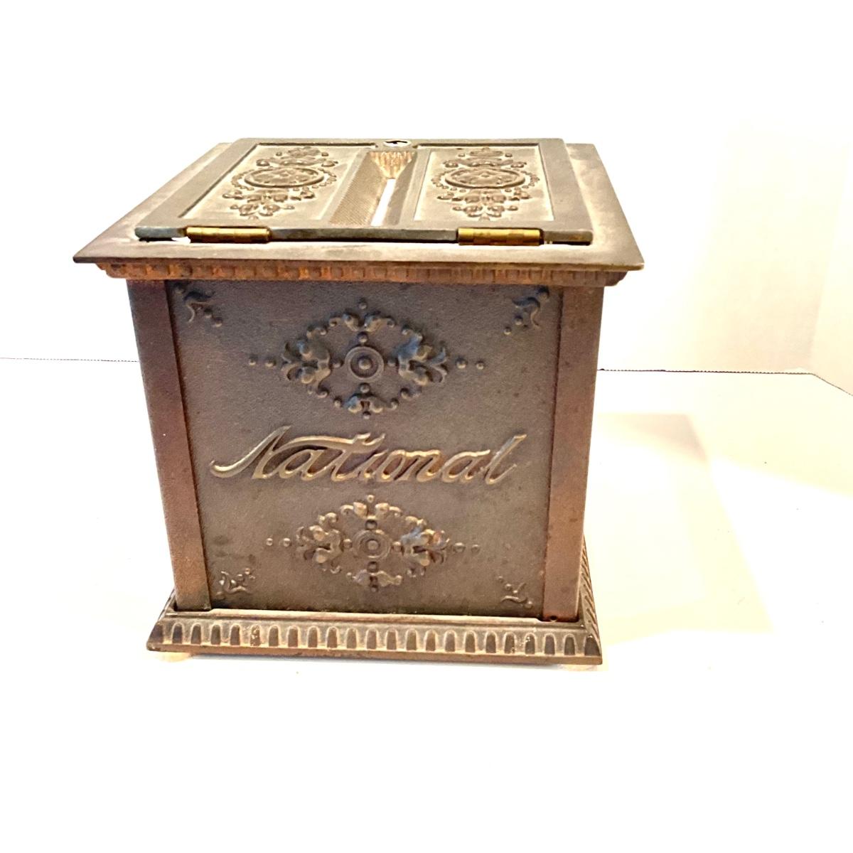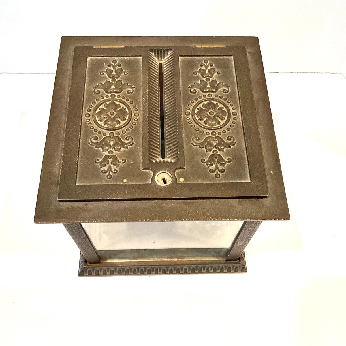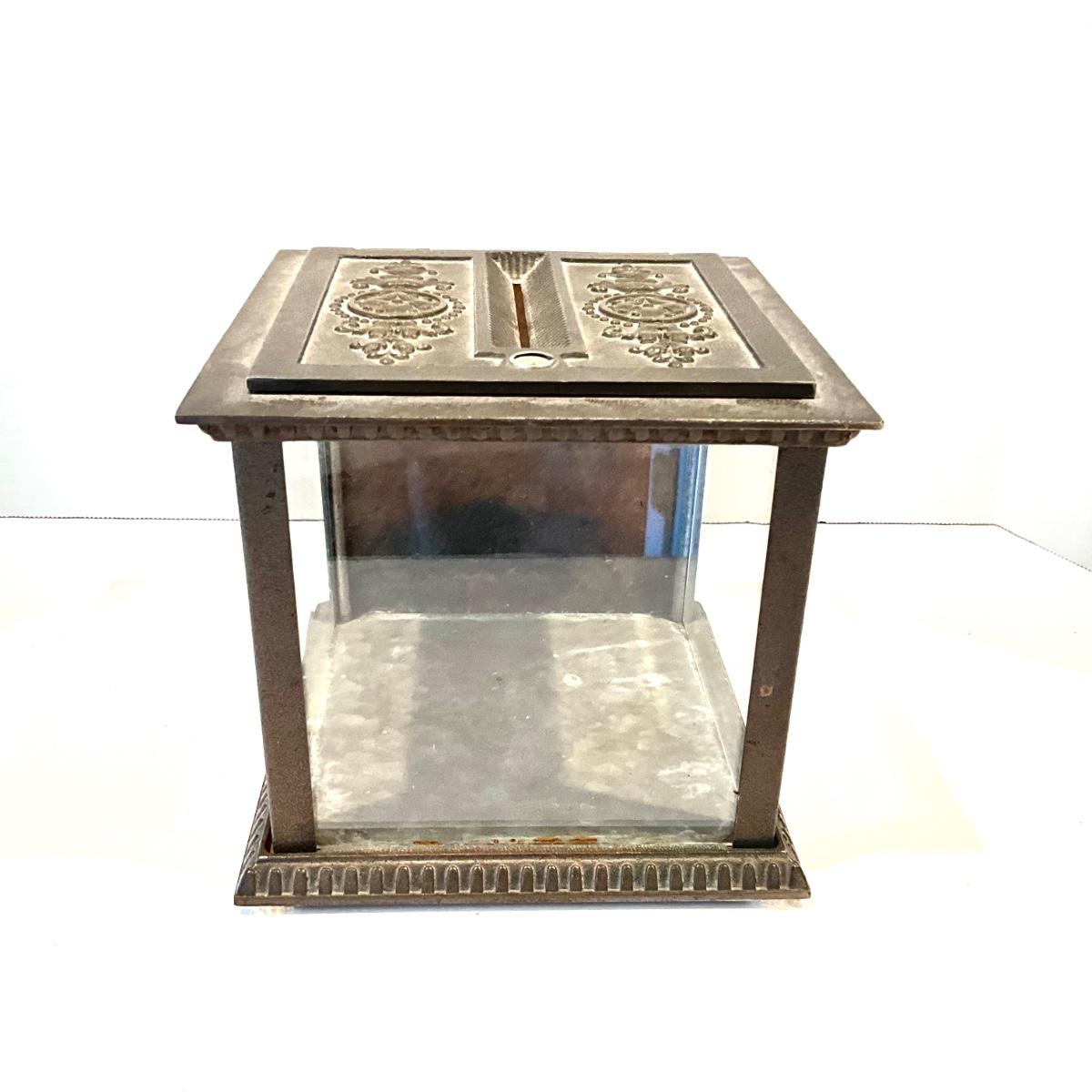 LR-1086 Antique National Cast Metal Glass Sided Receipt/Ticket Stub/Ballot Box