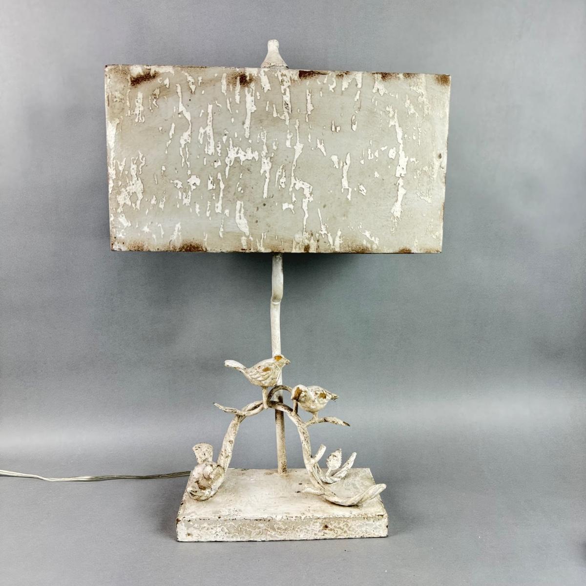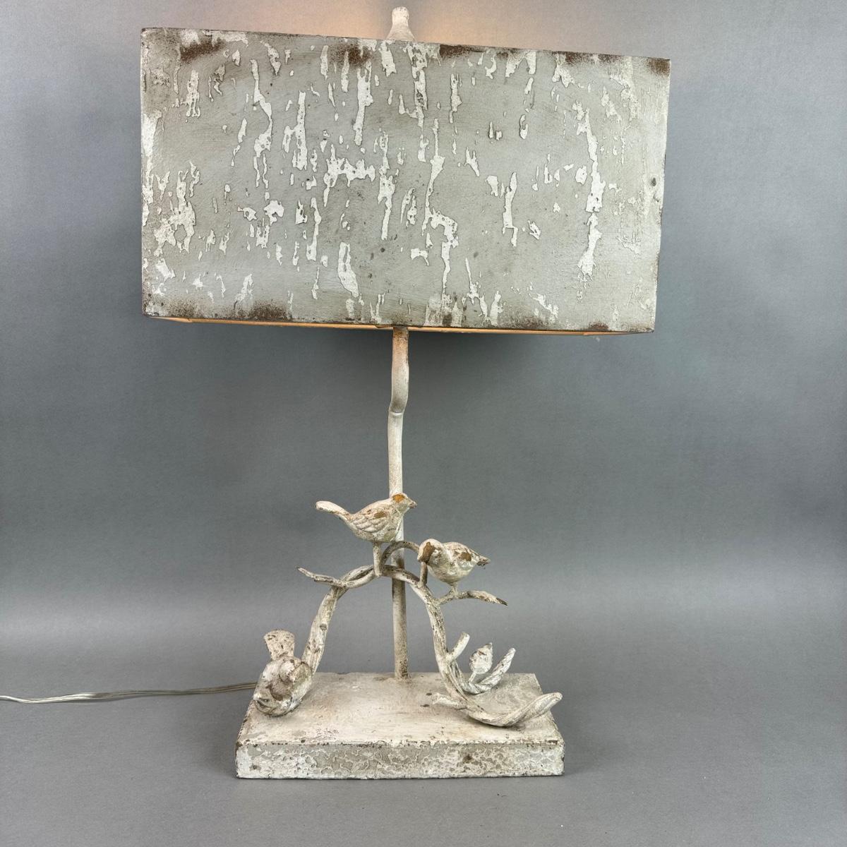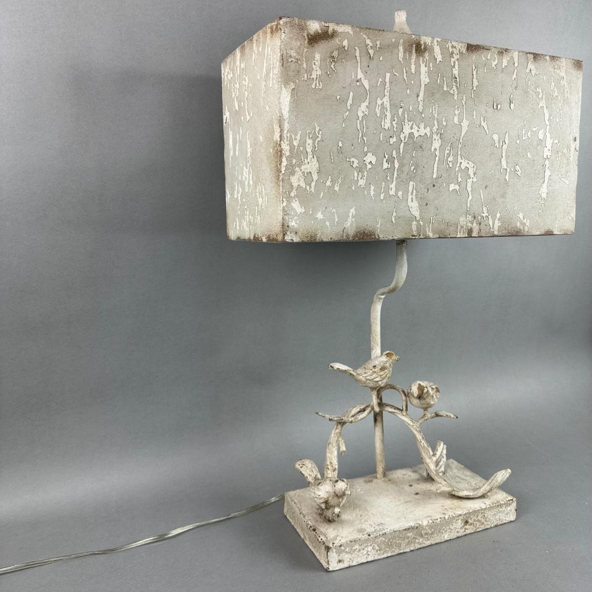 LR109 White Distressed Painted Metal Bird Lamp