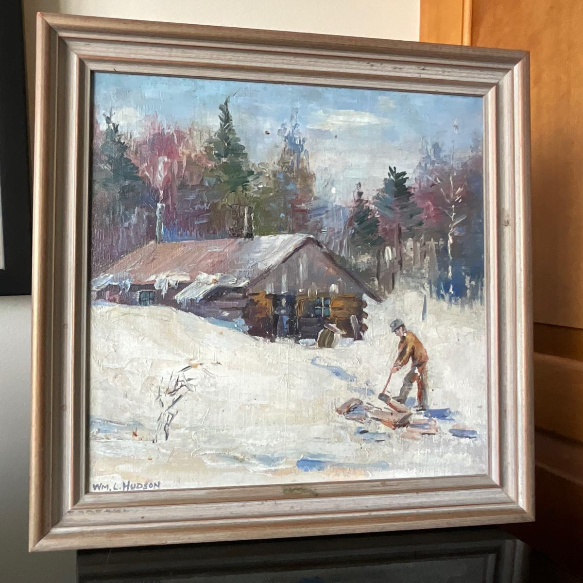 LR-1093 Antique "Into the Woods" Snow Scene by William L. Hudson