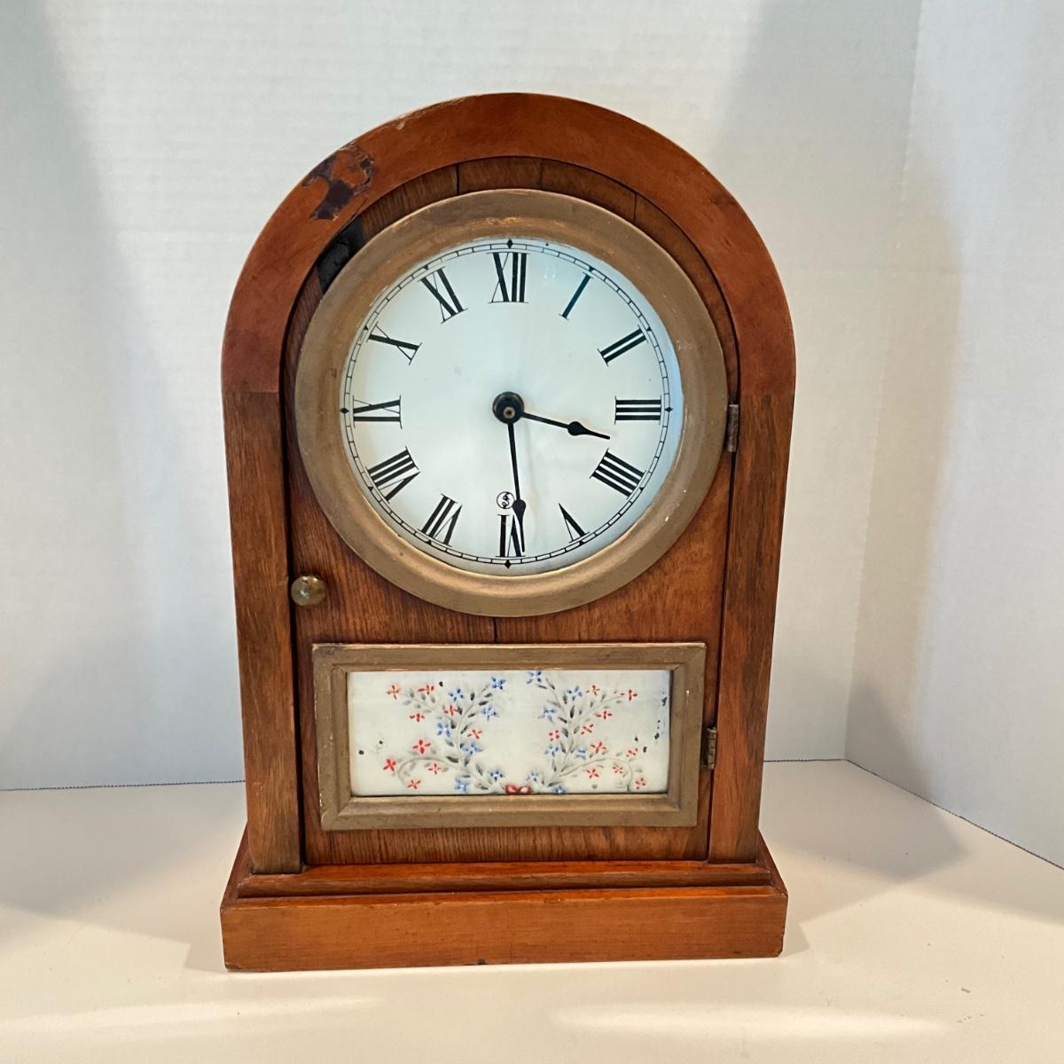 LR-1098 Antique Wooden Dome top Handpainted Glass Front Seth Thomas Clock