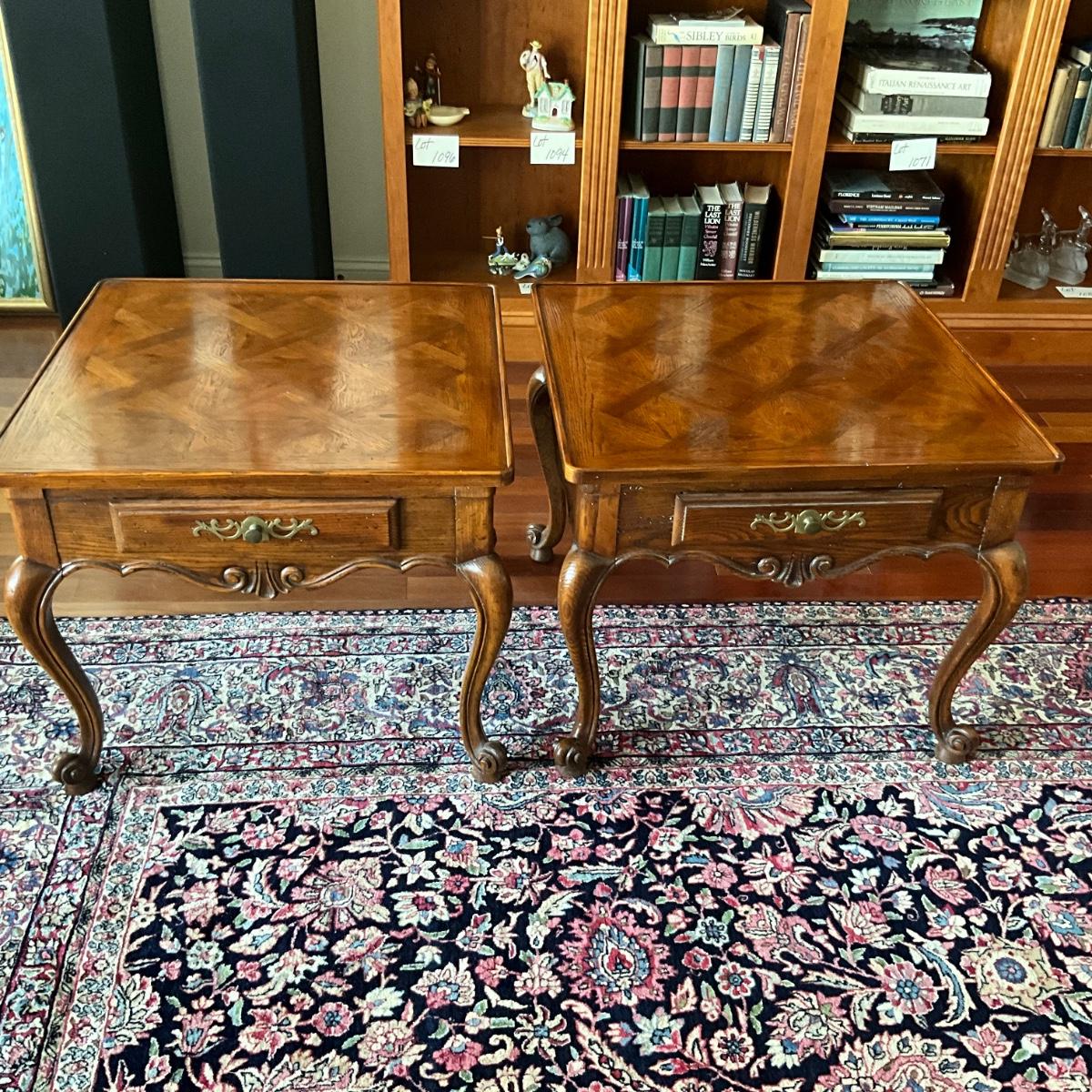 LR-1117 Pair of French Provincial JOHN WIDDICOMB Walnut End Tables