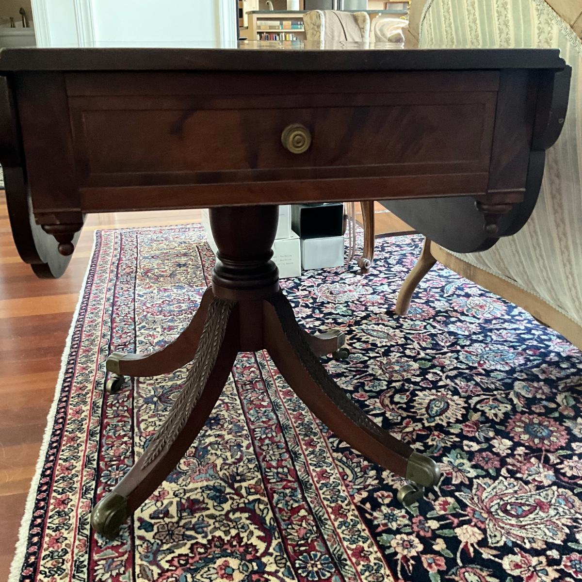 LR-1119 Antique Federal Style Duncan Phyfe Drop Leaf Mahogany Table