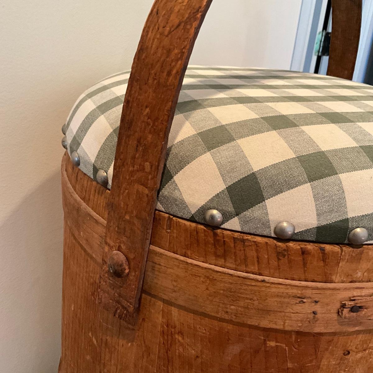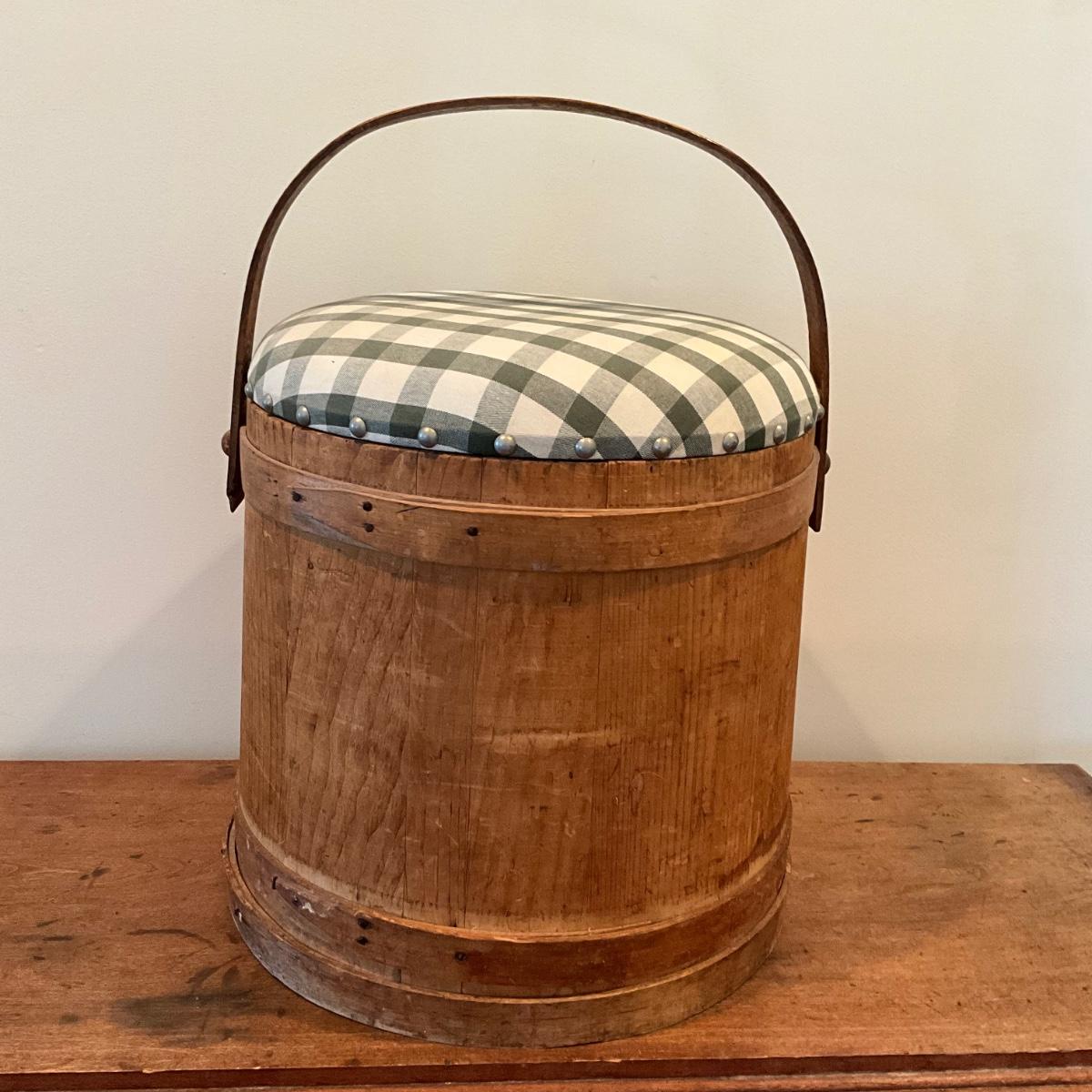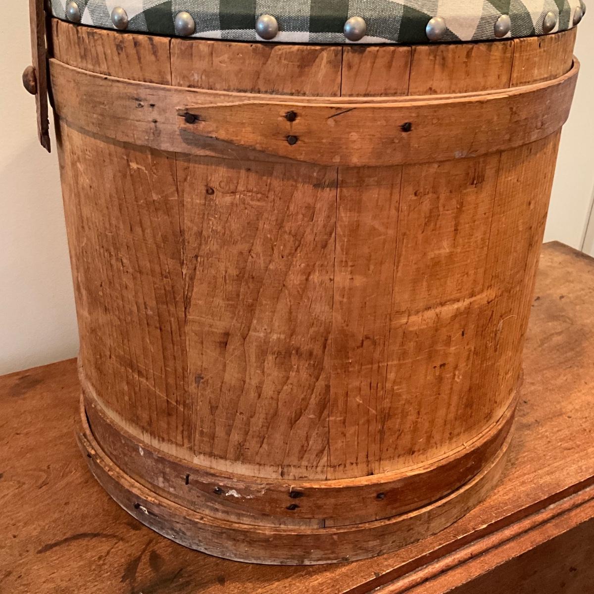 LR-1139 Large Antique Pine Upholstered Top Firkin Bucket