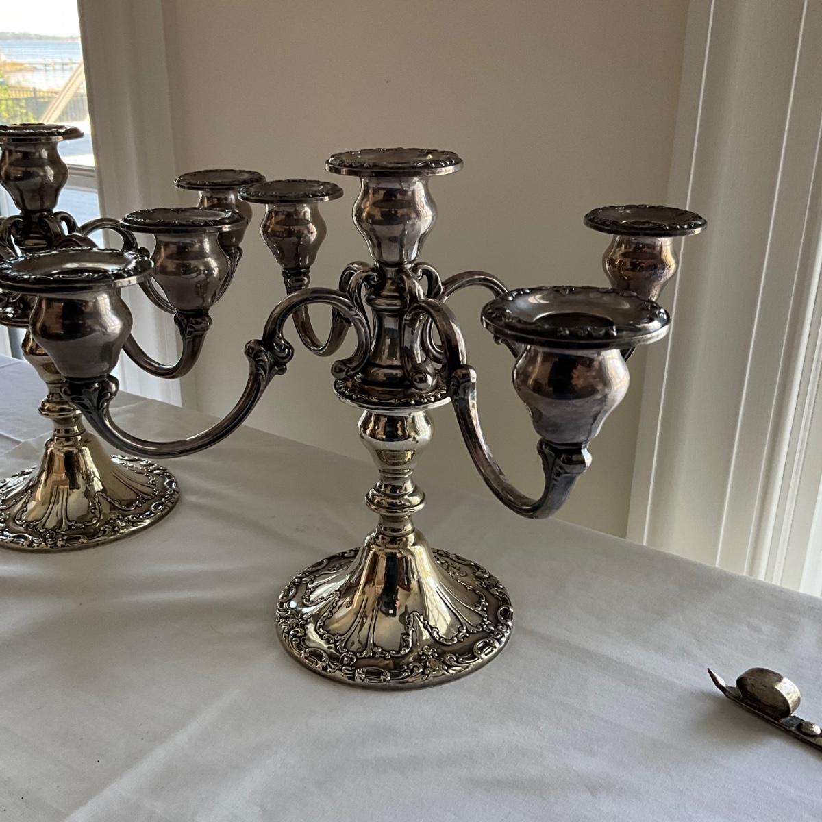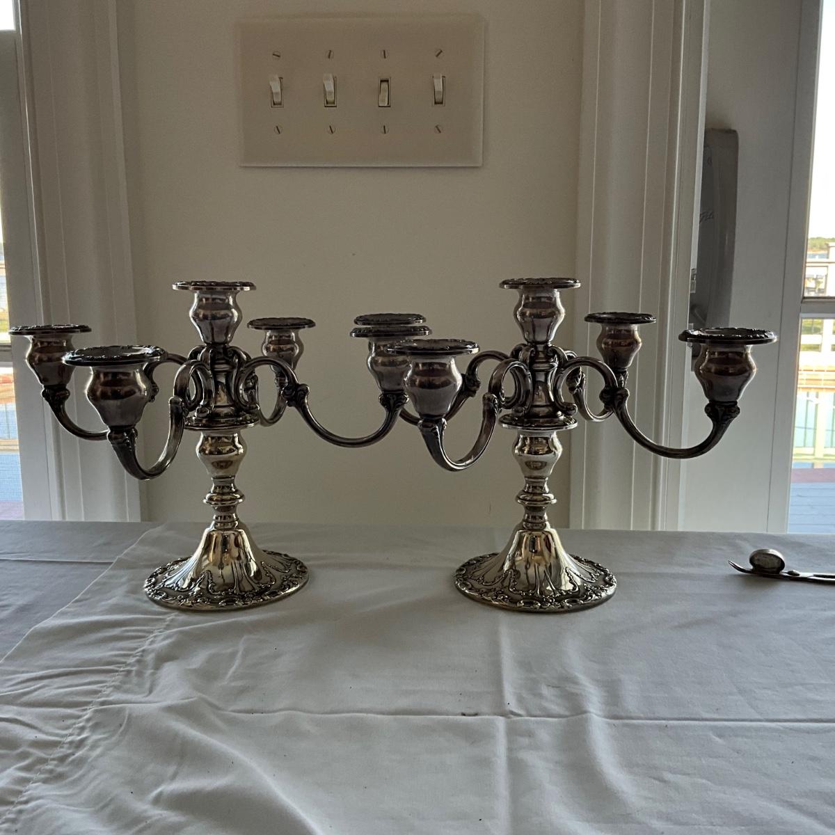 LR1531 Pair of Antique Sterling Silver 5 Candelabra
