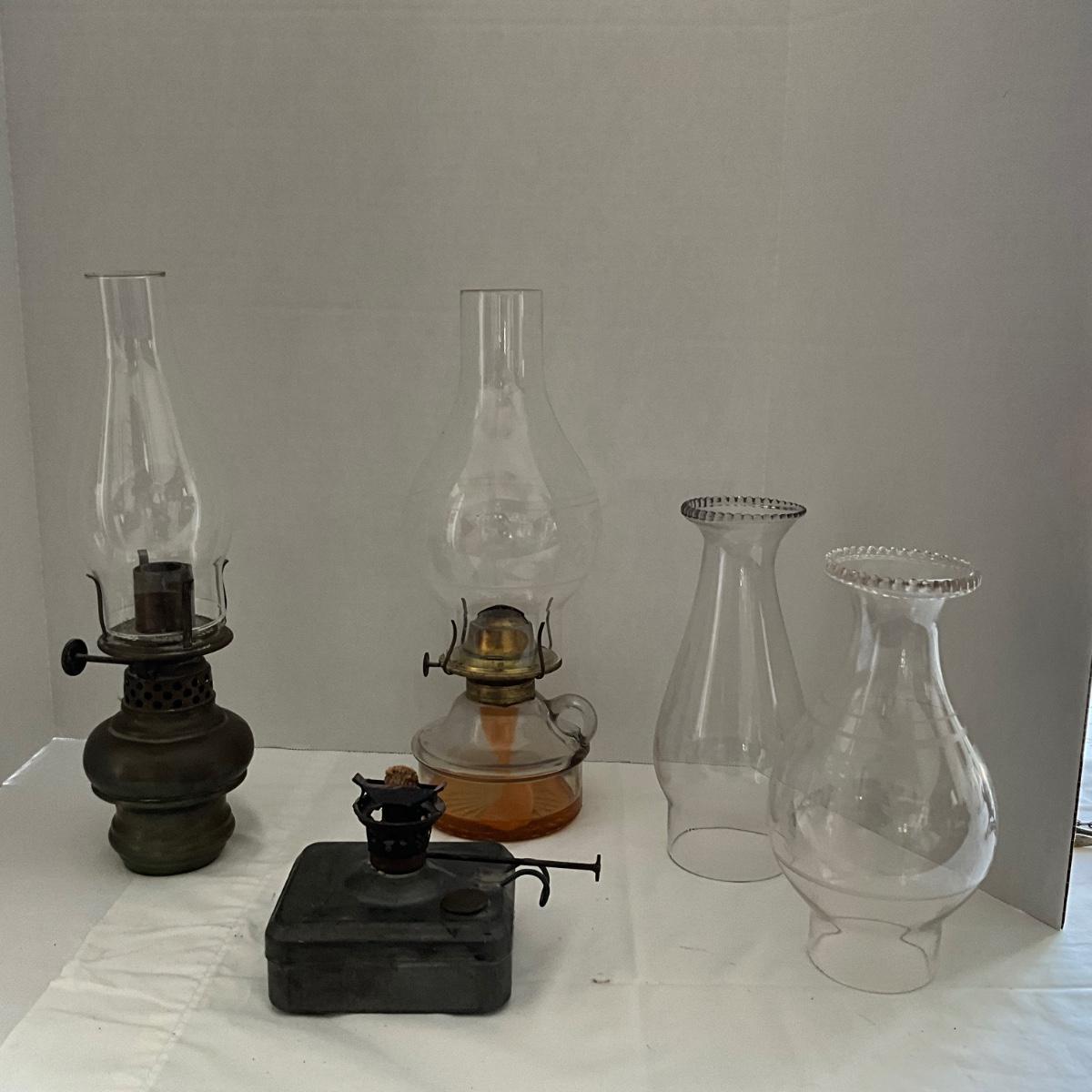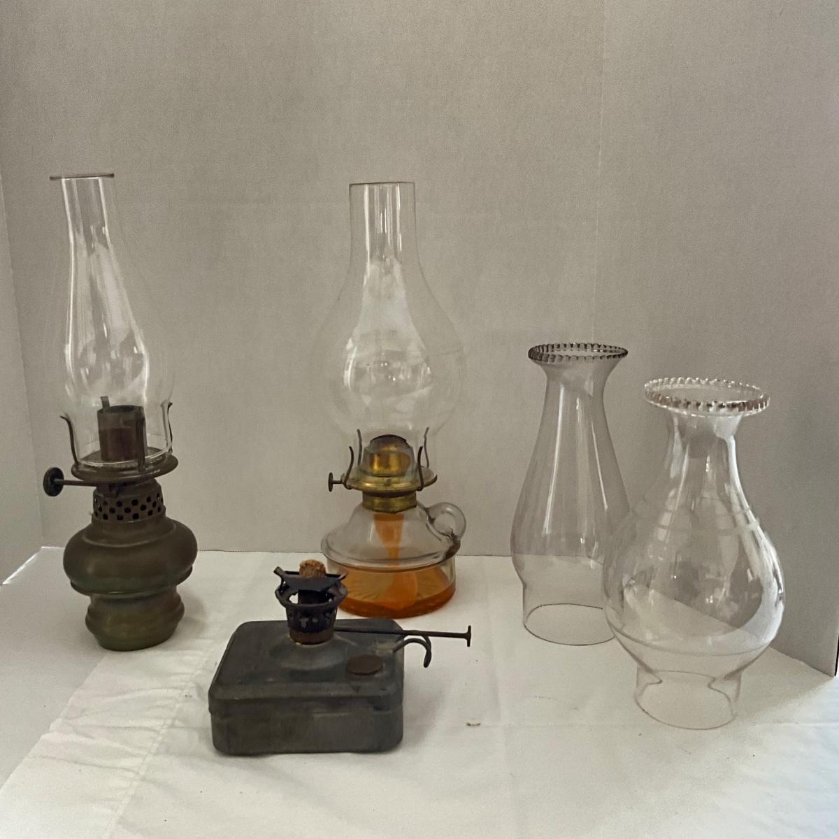 LR1535 Vintage Antique Oil Lamps and Etched Globes