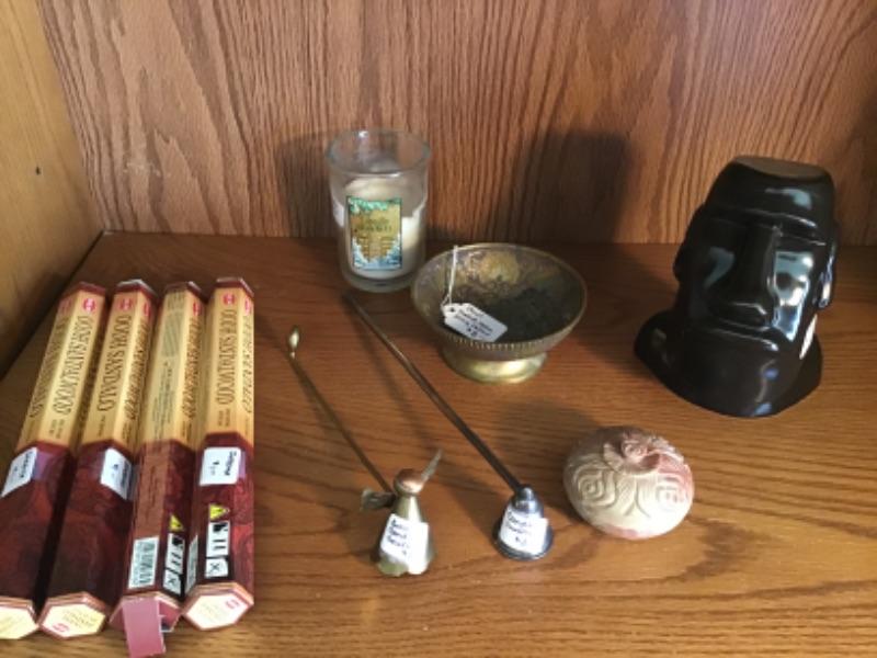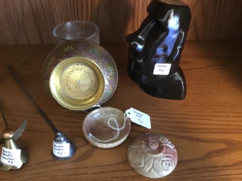#lr19. India ivory palace bowl, snuffers, trinket box, head statue and incense
