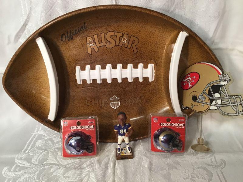 LR#201 - 3 plastic chip bowls & misc. football stuff