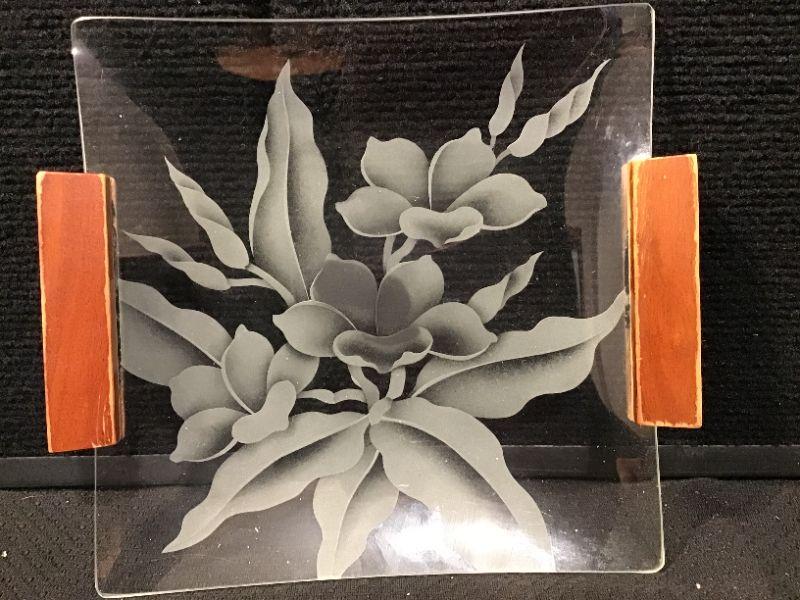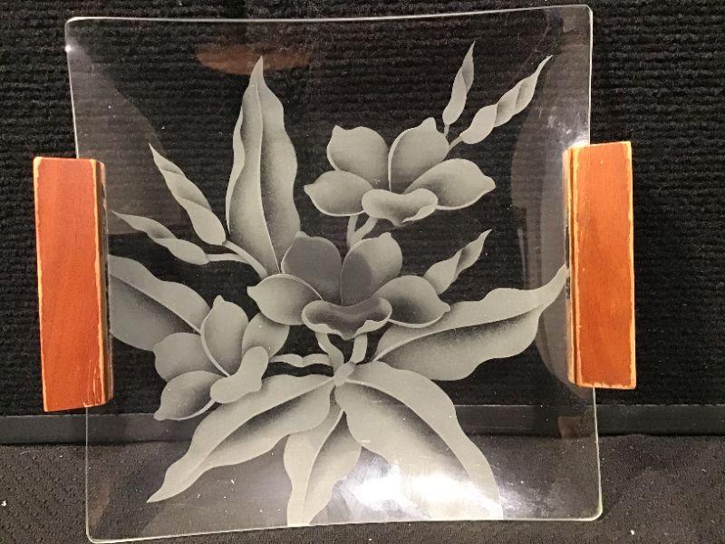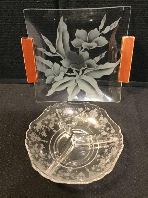 #LR210 - Vintage glass bowl & wood handled glass plate