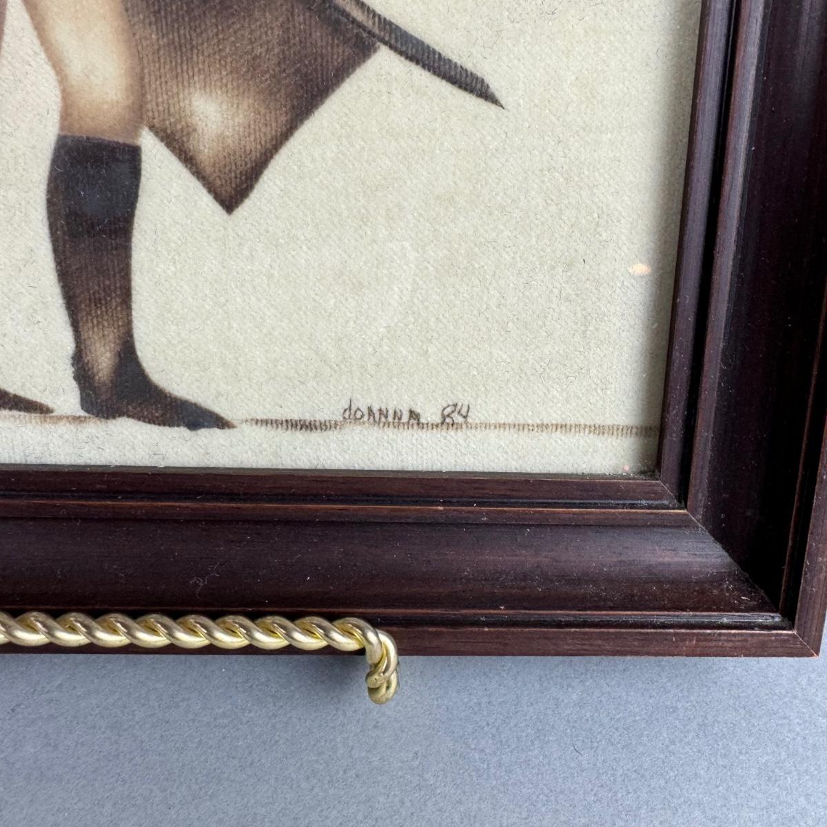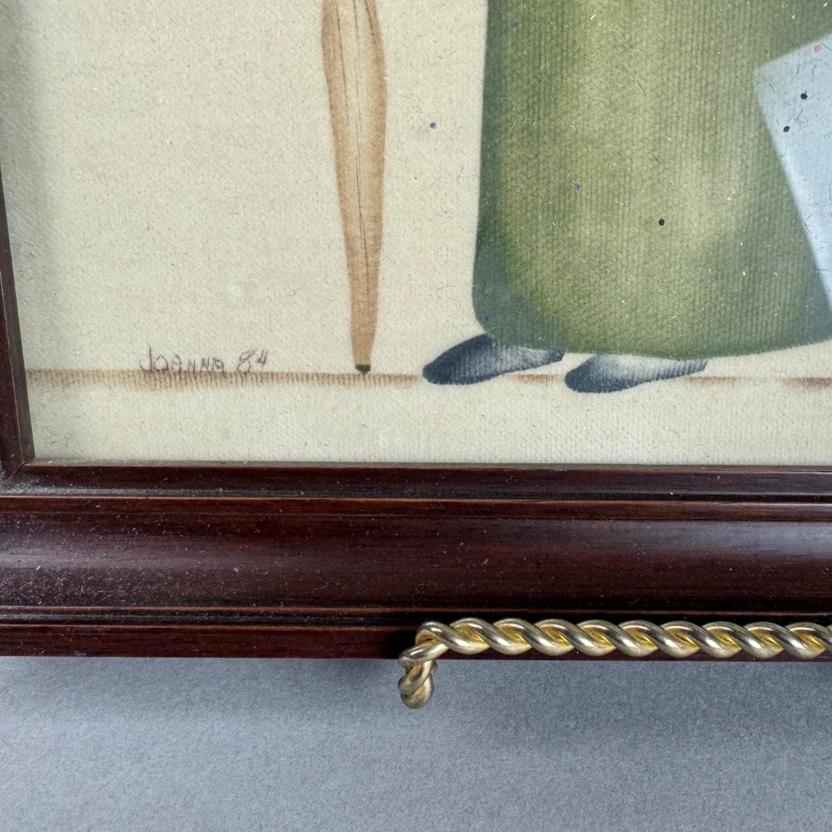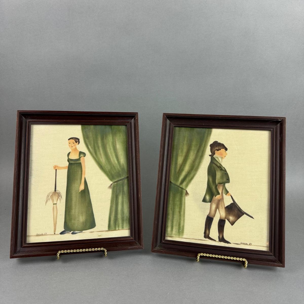 LR231 Pair of Primitive Painting on Linen Signed Joanna 1984