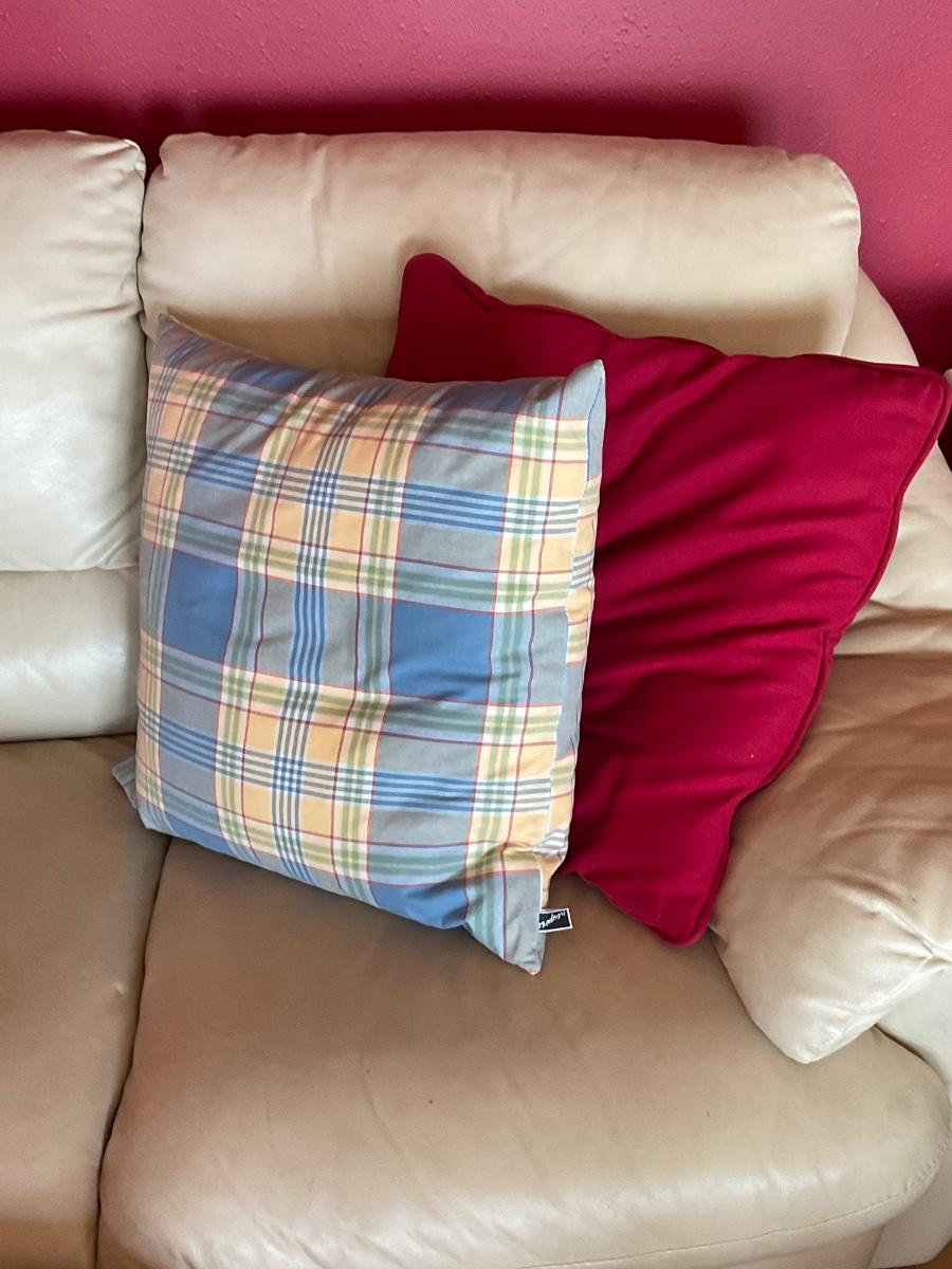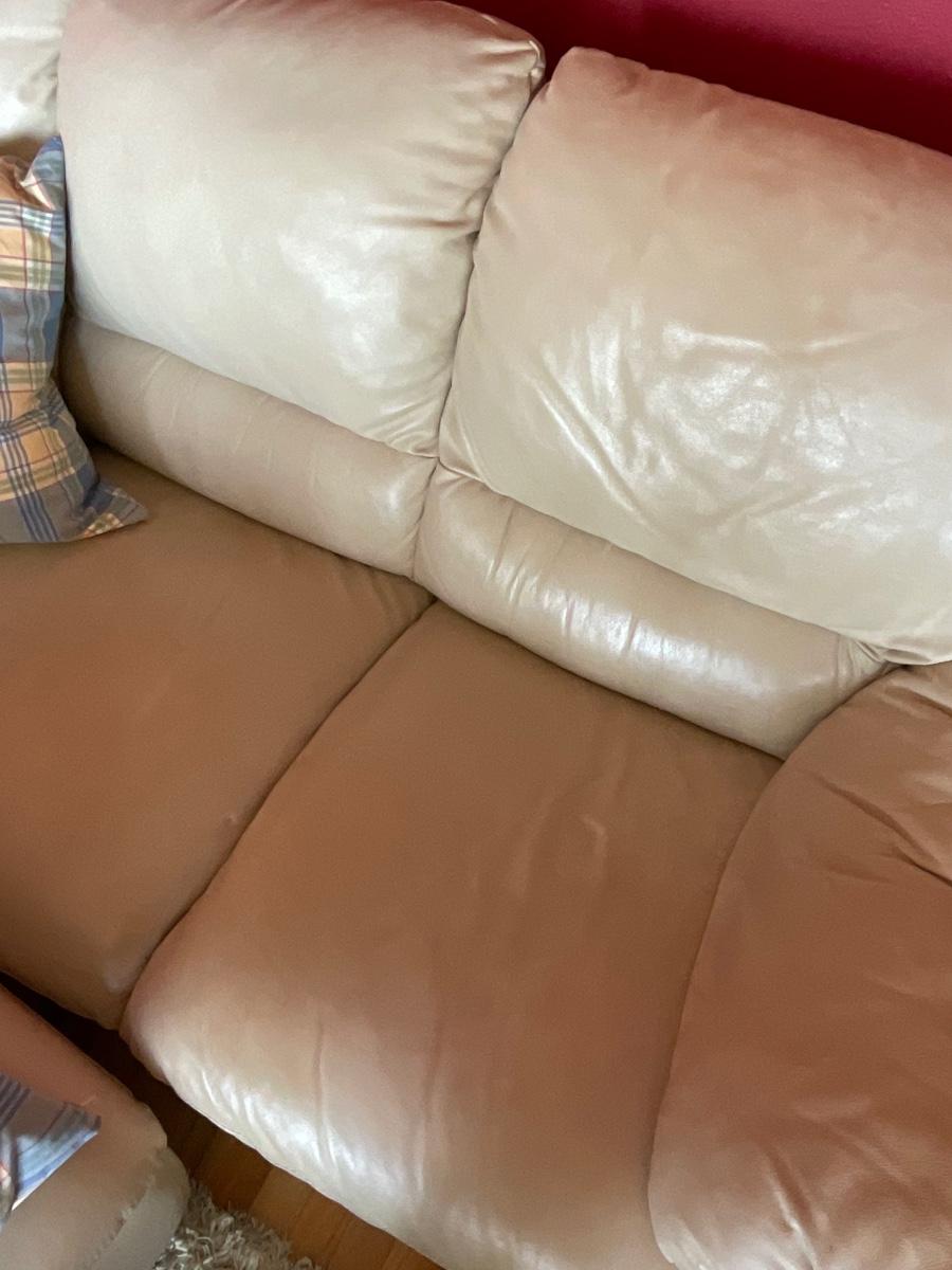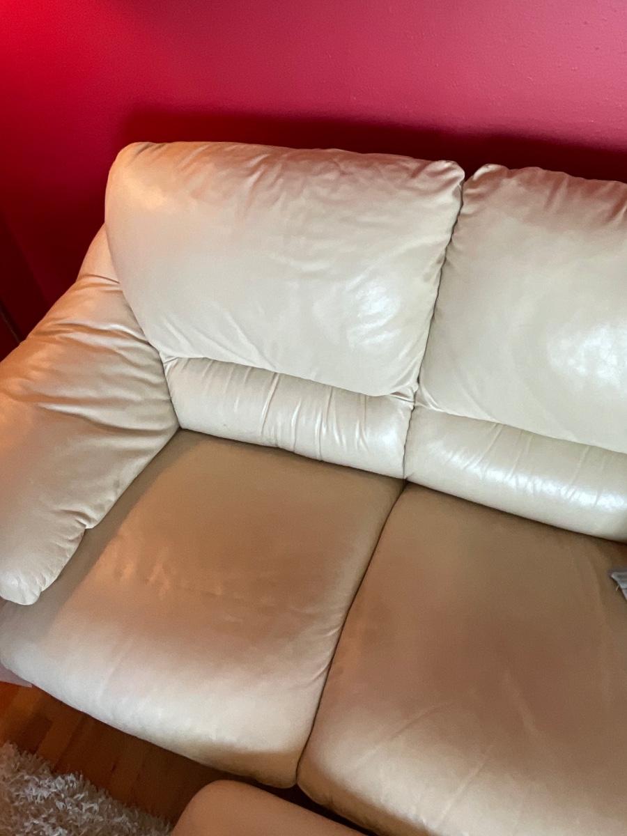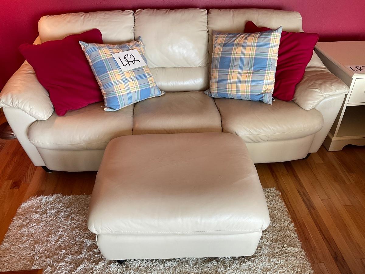 LR2-Leather Sofa w/ 4 pillows and ottoman on wheels