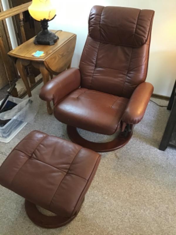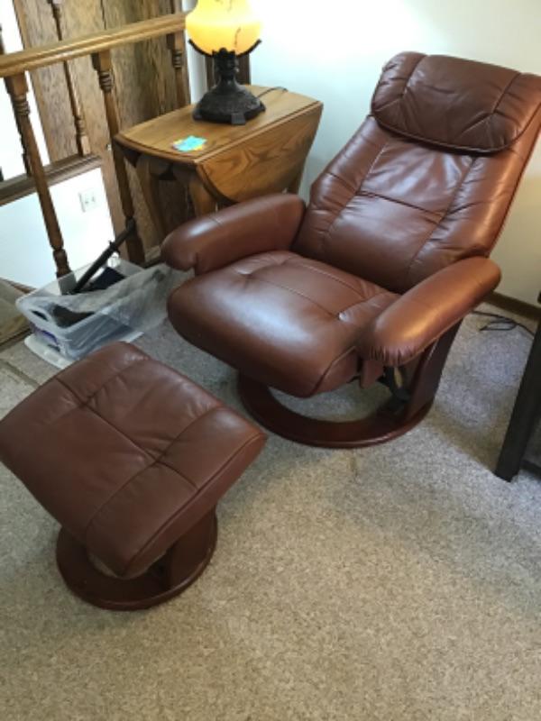 #lr33. Pleather reclining chair and ottoman