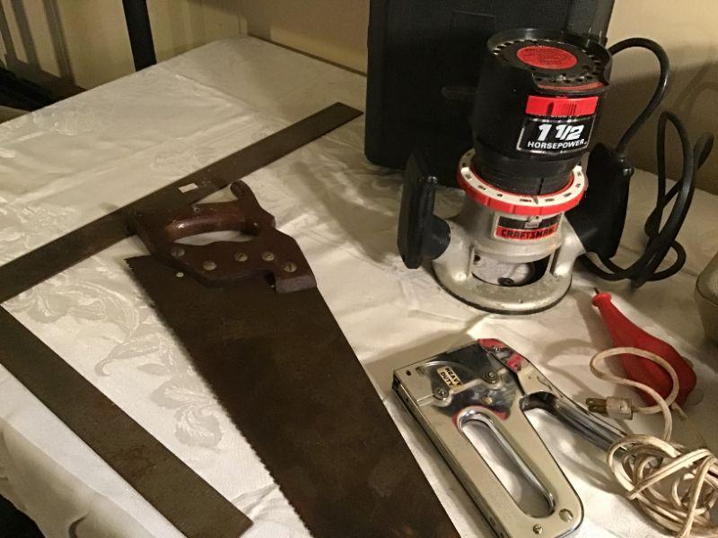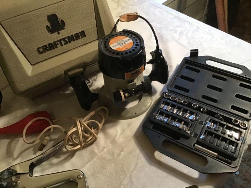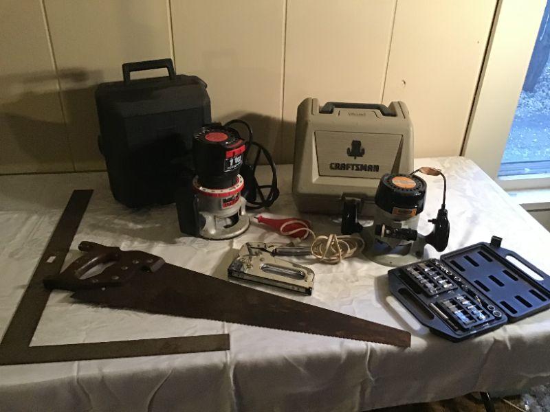 Engraver works, routers need work, saw, square, partial socket set