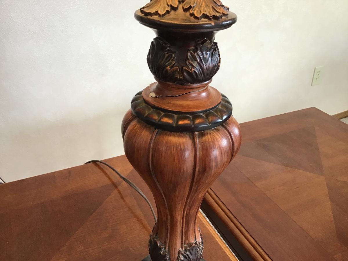 One lamp in great condition, One lamp has a crack (see picture). Measures 30”h.