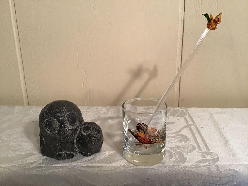 LR#436 - Owl soapstone, Mallard shot glass/swizzle stick