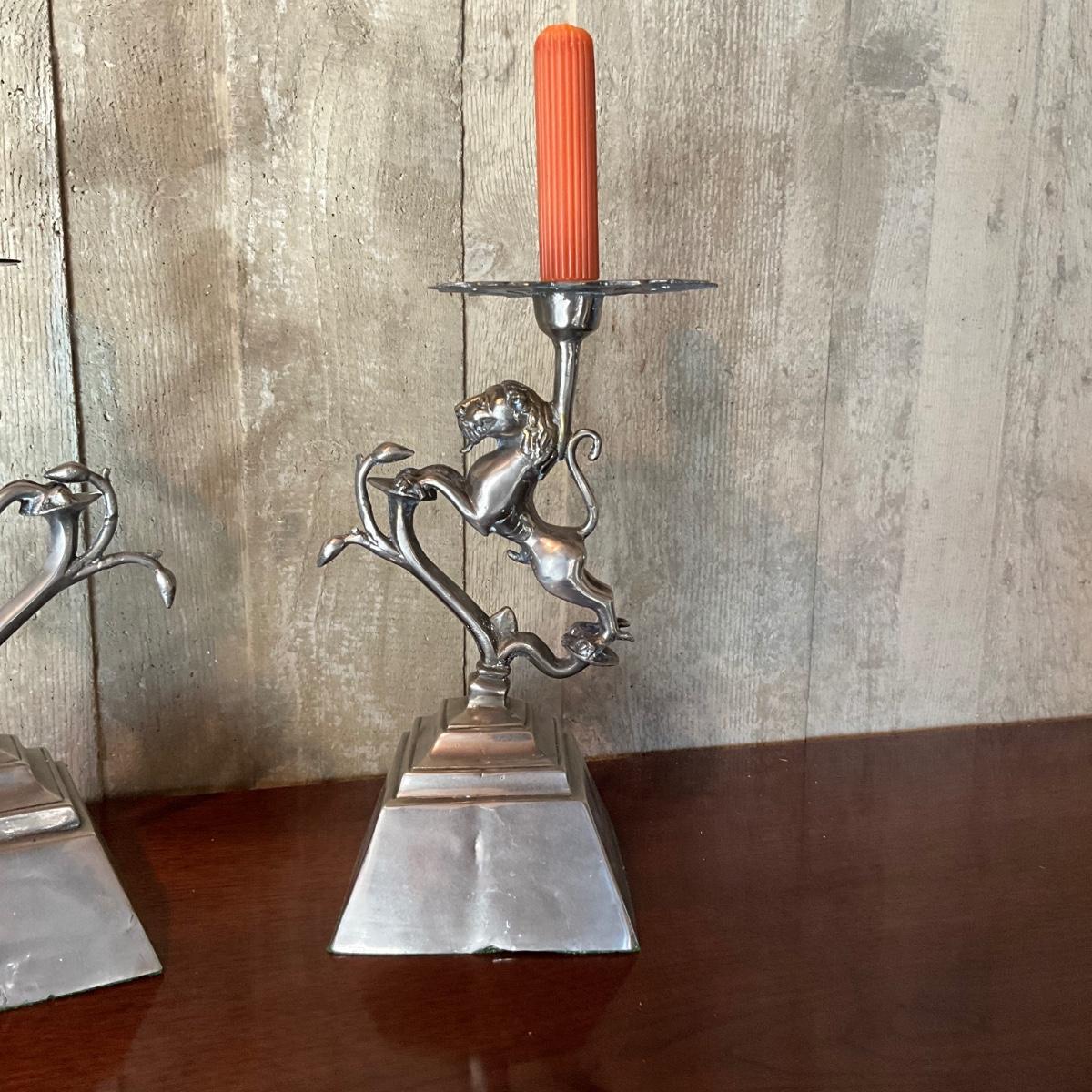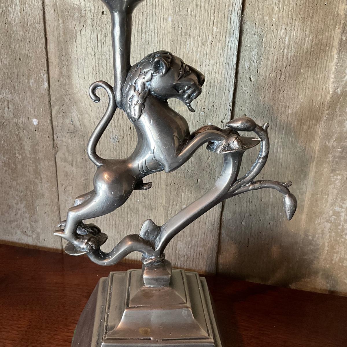 LR722 Pair of Antique Chinese Lion Bronze Candlesticks