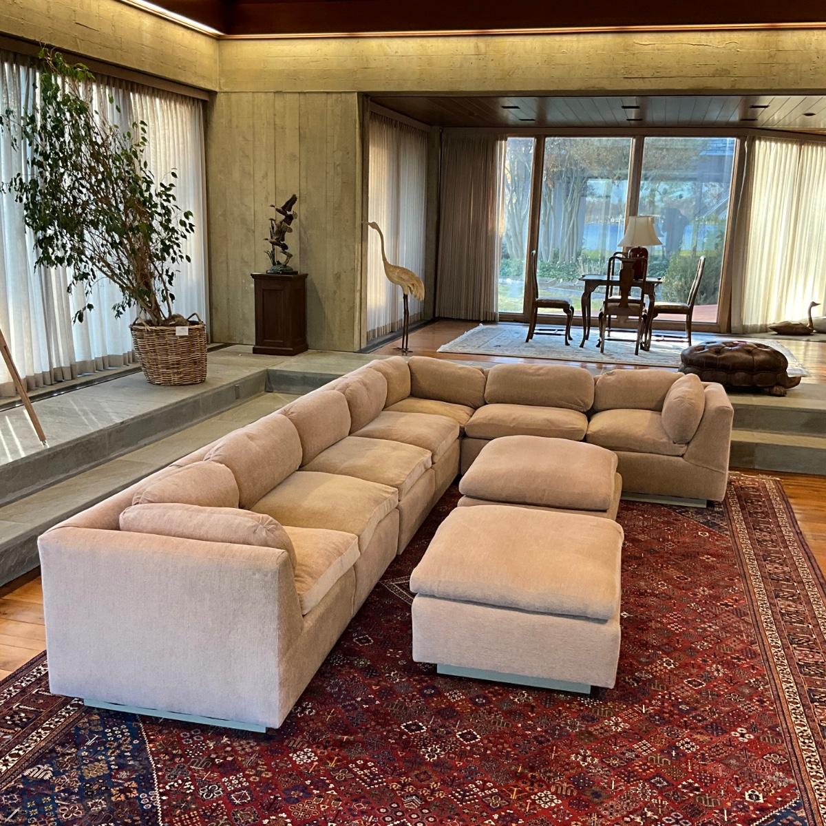 LR736 Large Mid Century Off White Down filled Sectional Sofa