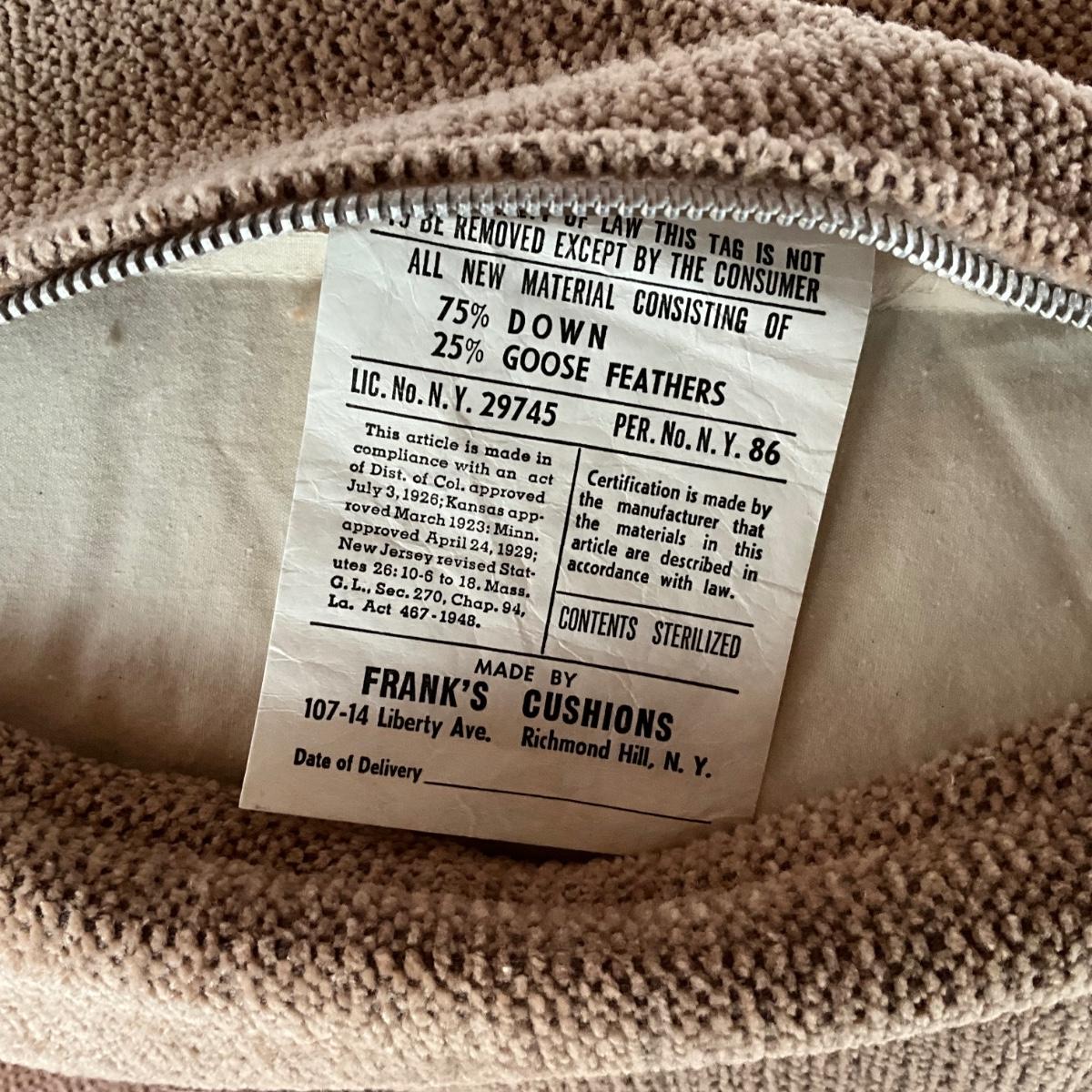 No signs of stains , clean , very versatile All cushions are down filled construction underneath has burlap webbing