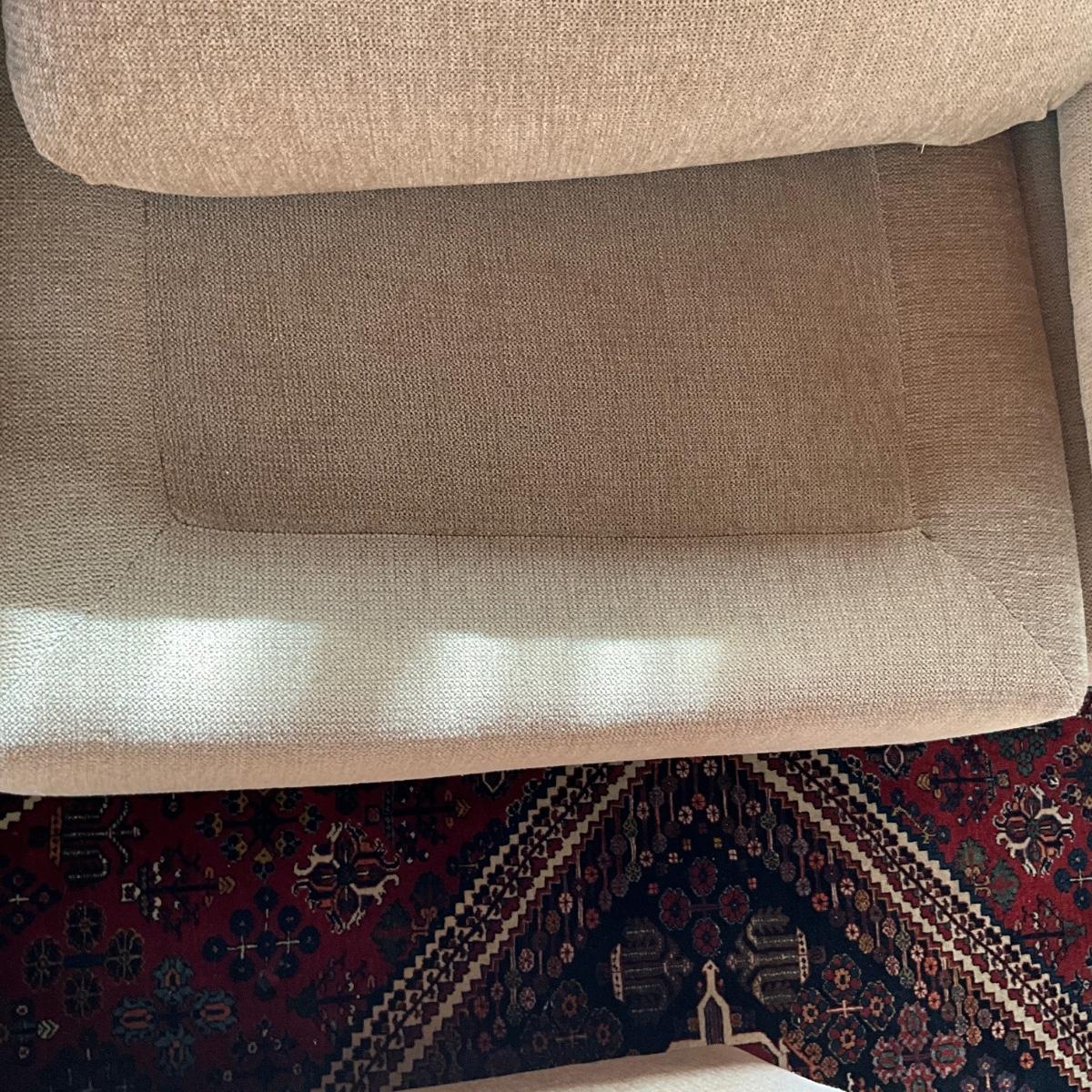 The color of this sofa is slightly faded and has a faint tint of pale pink