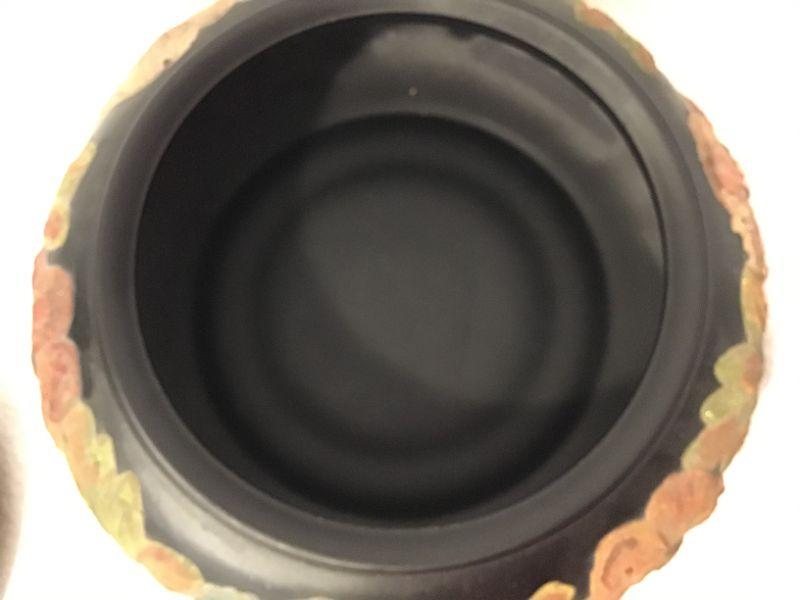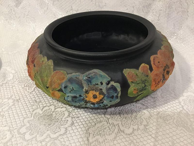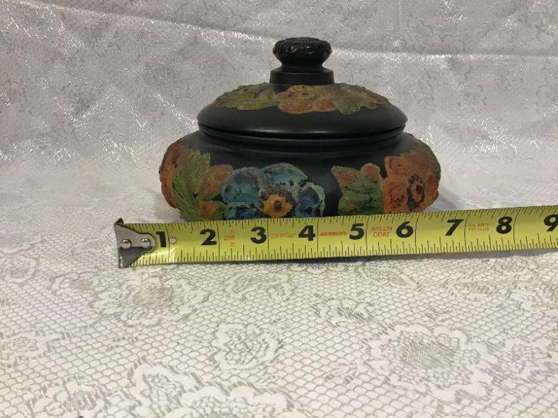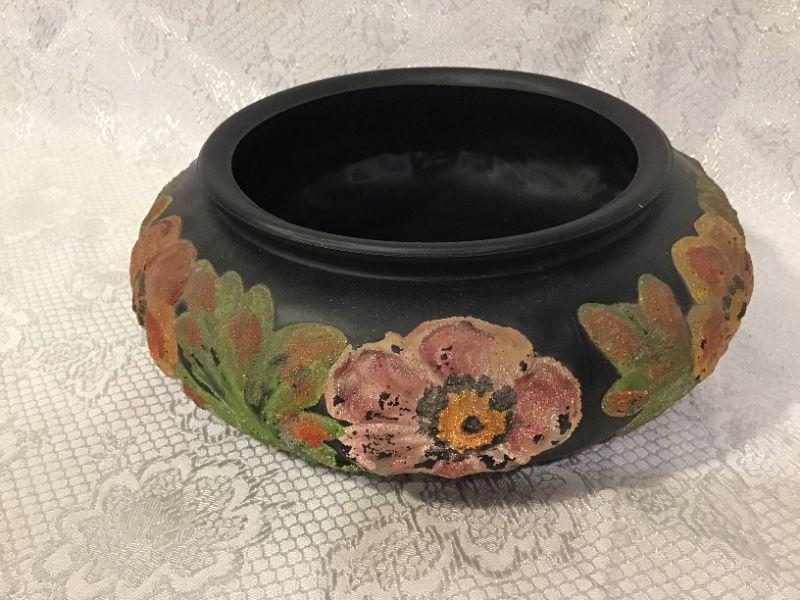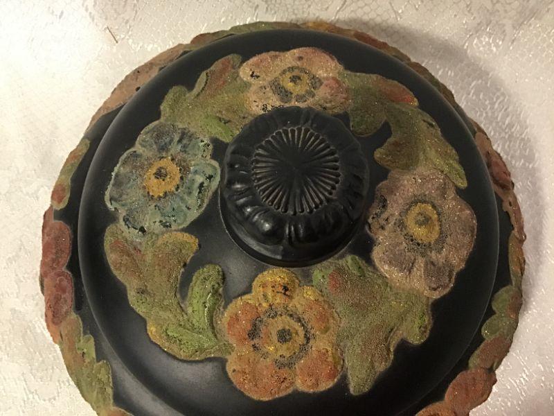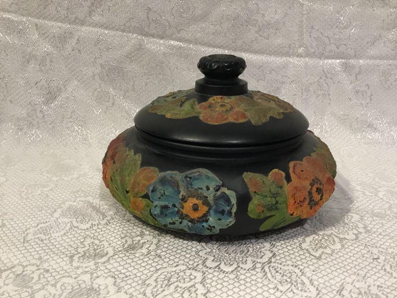 LRJ217 - McCourt Studios Peacock Prod.Black Painted Bowl w/cover