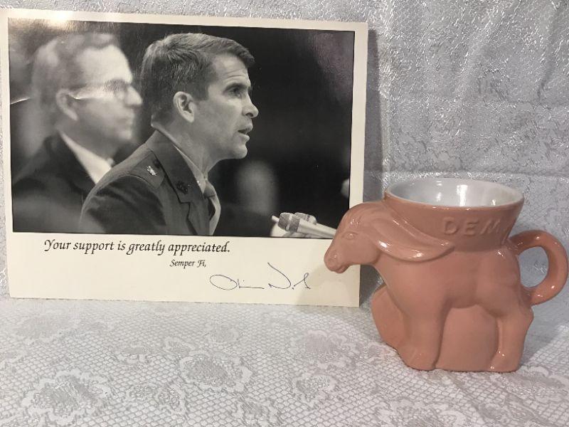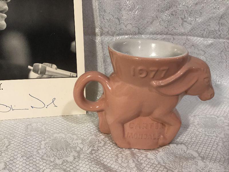 LRJ269 - Frankoma 1977 Carter Mondale DEM Mug & Oliver North Pic
