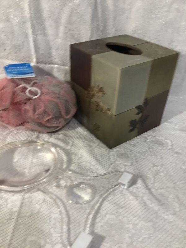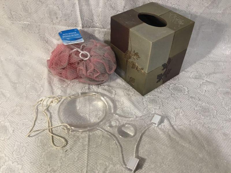 LRJ297 - Kleenex Box, Over Neck Magnifier, Bath Sponges