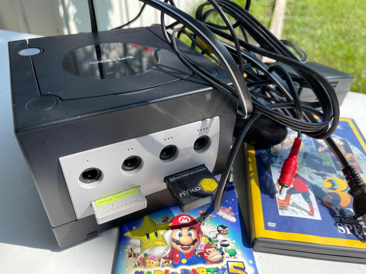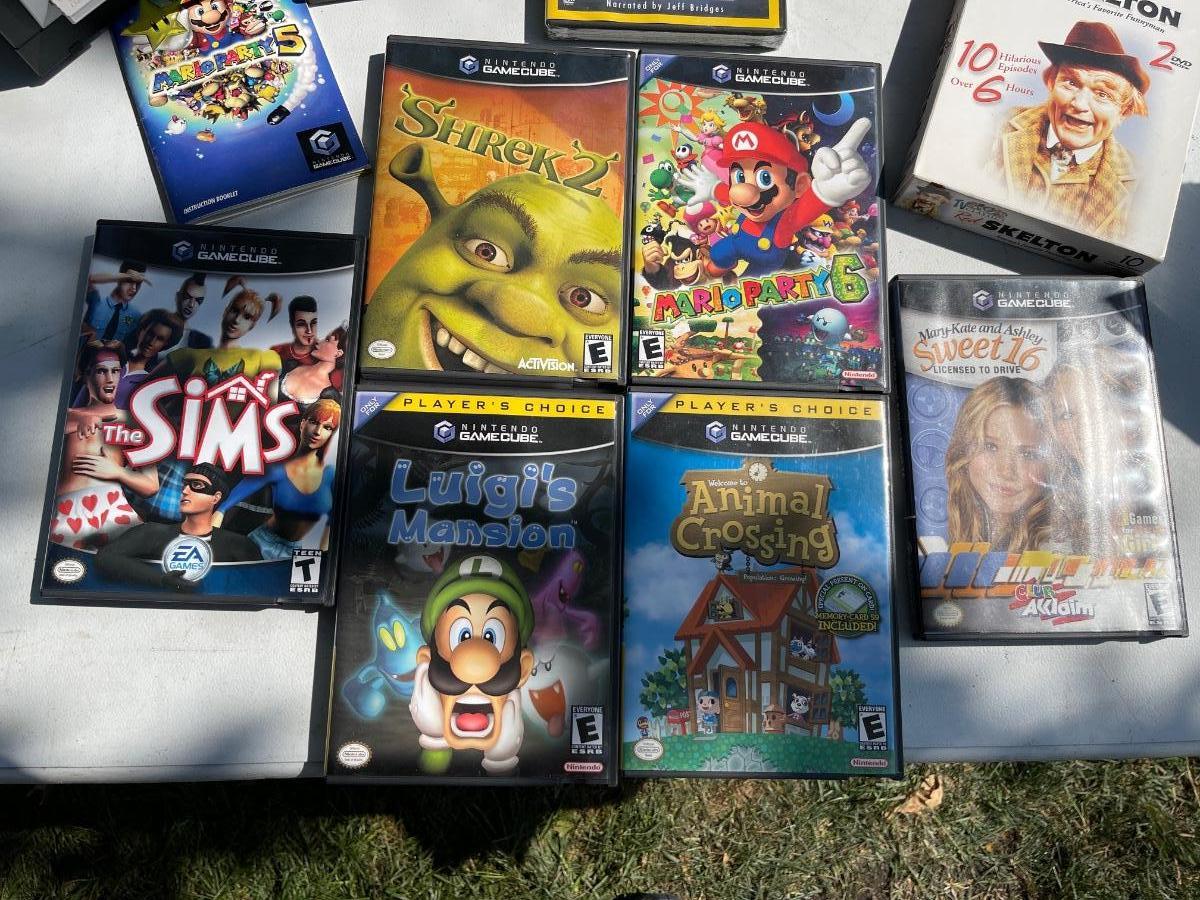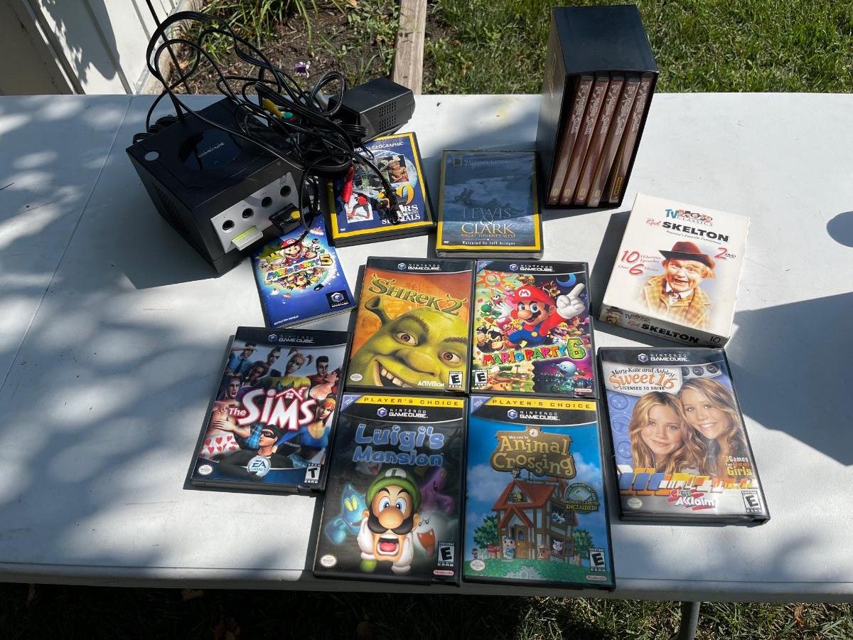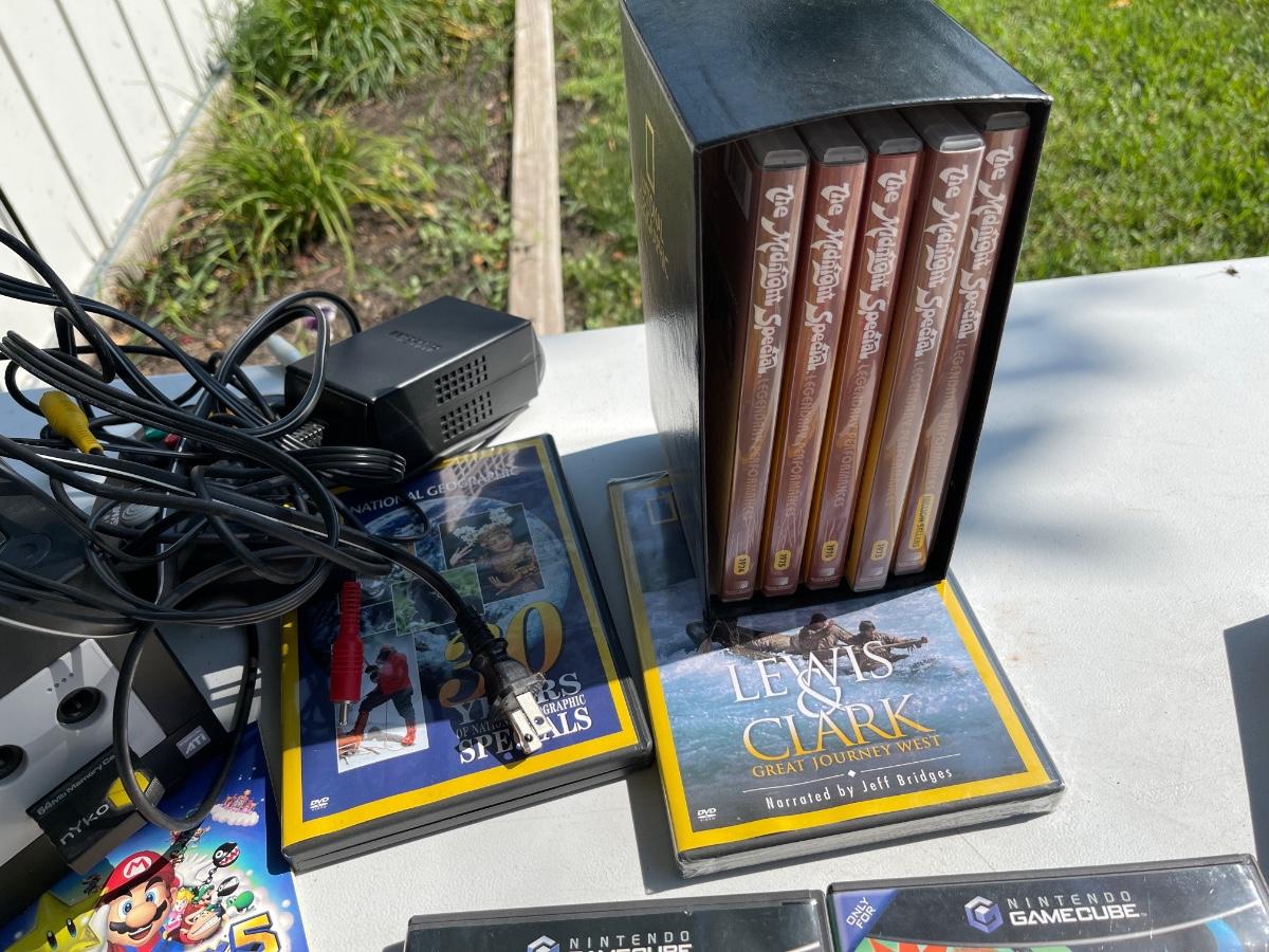 LS17-Nintendo game cube with games and miscellaneous DVDs