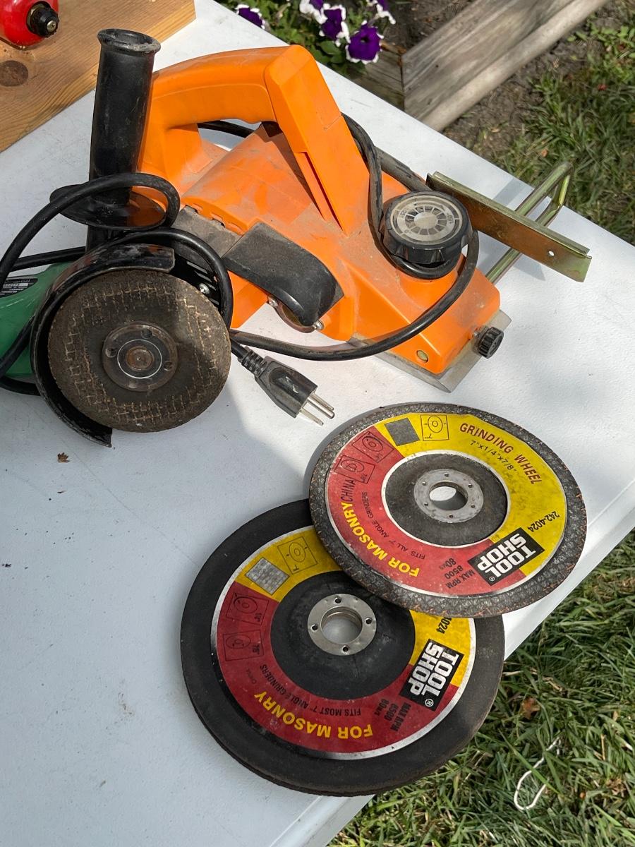 LS36-Misc power tools and grinding wheels, plus miscellaneous