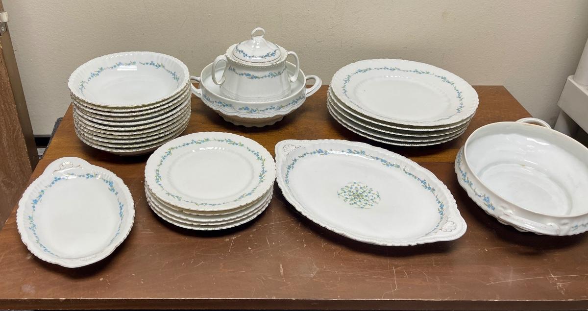 LS&S Carksbad Austria china dinnerware pattern 3248 vintage scalloped blue flower border
