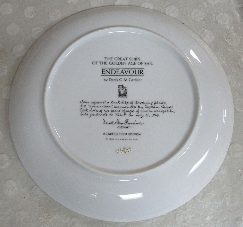 Ltd 1st Ed 1986 "Endeavour" Plate From the Great Ships of the Golden Age of Sail, Franklin Mint