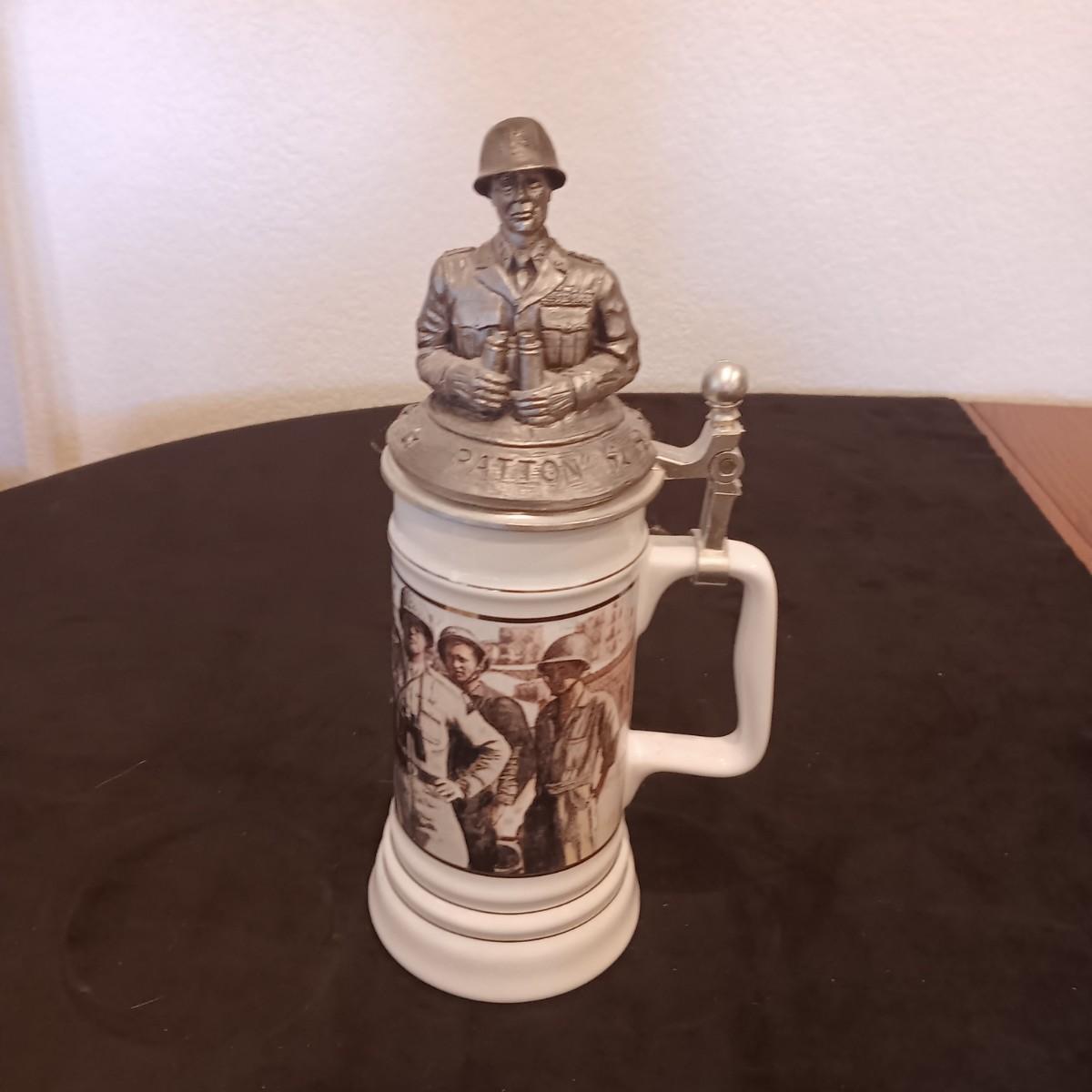 LT GENERAL GEORGE S PATTON STEIN WITH PEWTER TOP AND NRA COASTERS