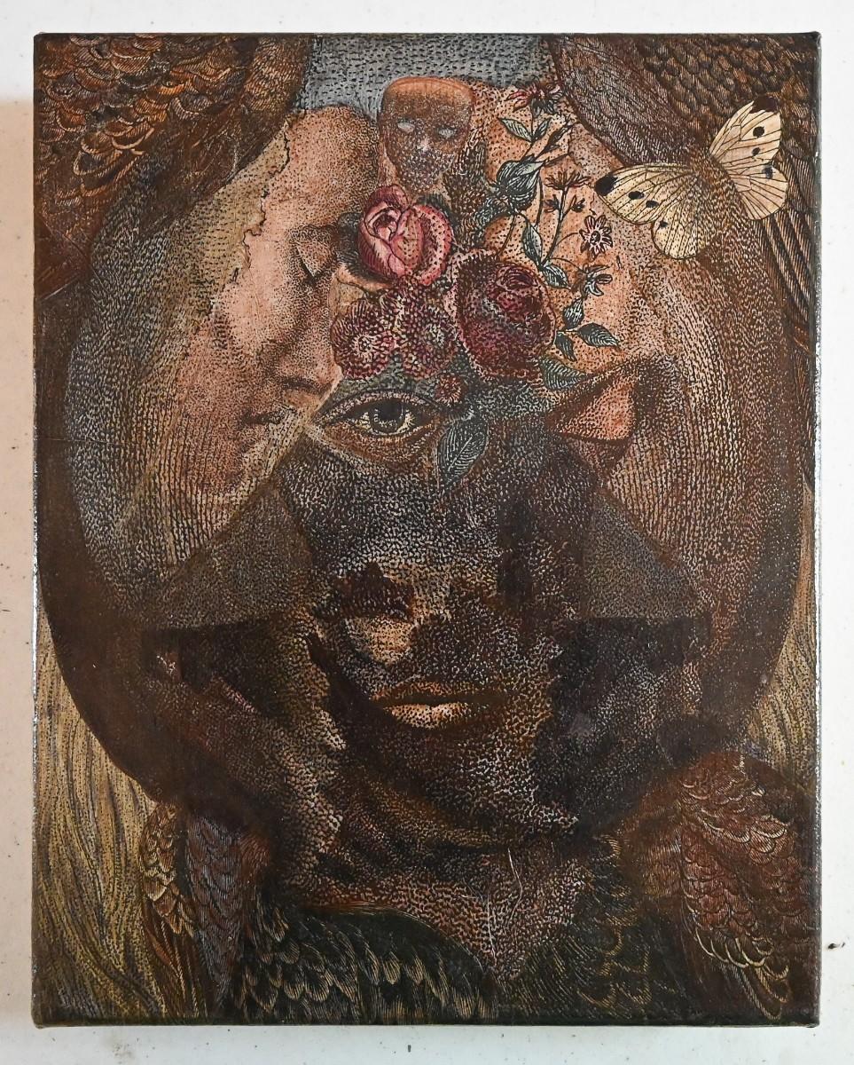 "L'été sous les Paupières" (2007) by artist Gilles Manero. Mixed media. Approx. 12" x 9.5".
