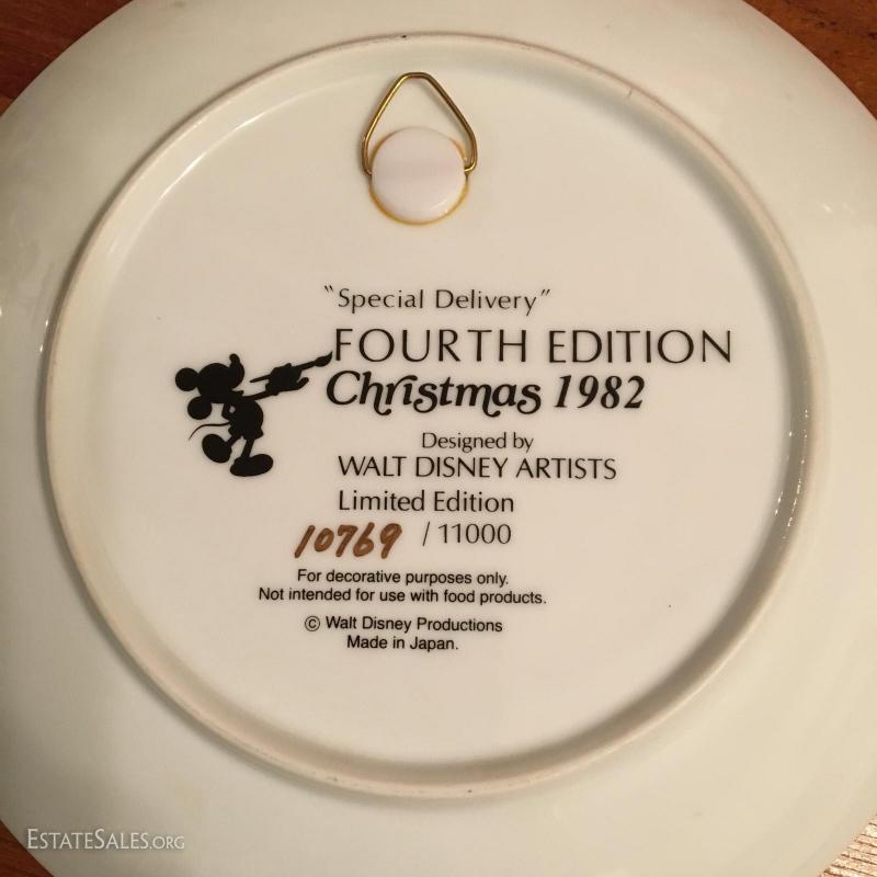 In perfect condition, this limited edition plate is #10769/ 11000., Titled "SPECIAL DELIVERY", Forth Edition. Original Disney sales sticker on back of box. Plate has secure brass loop for hanging. Plus Free Gift of Donald's nephew.