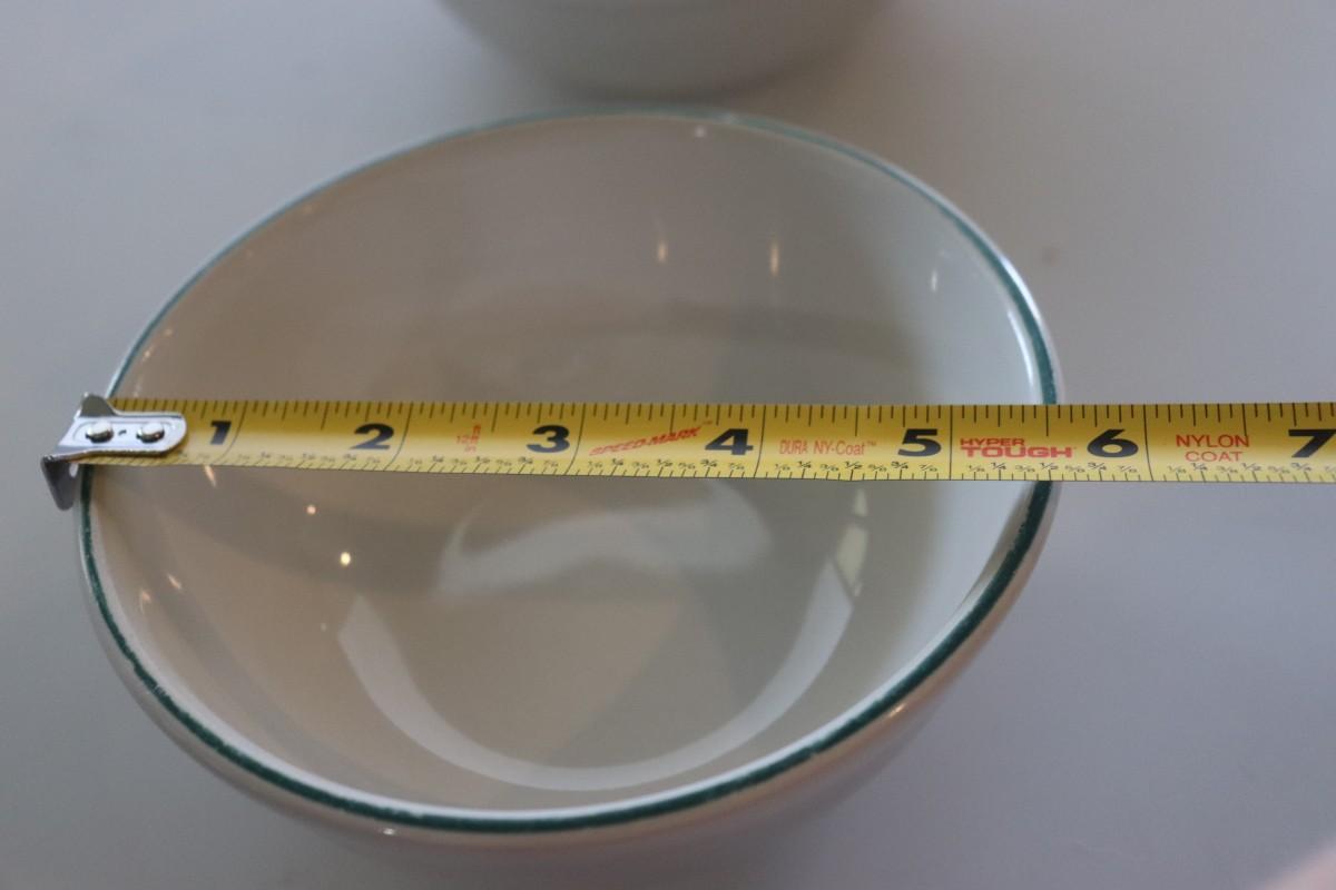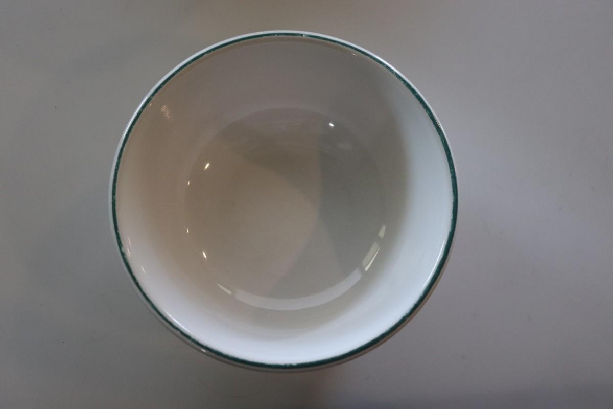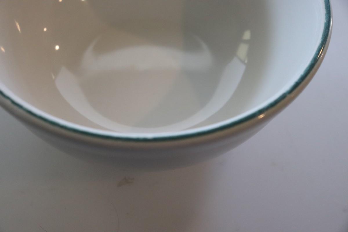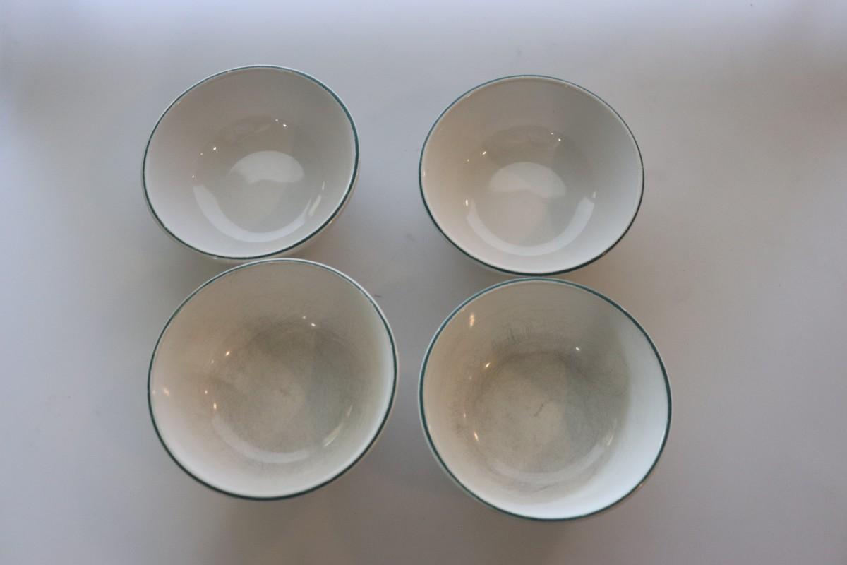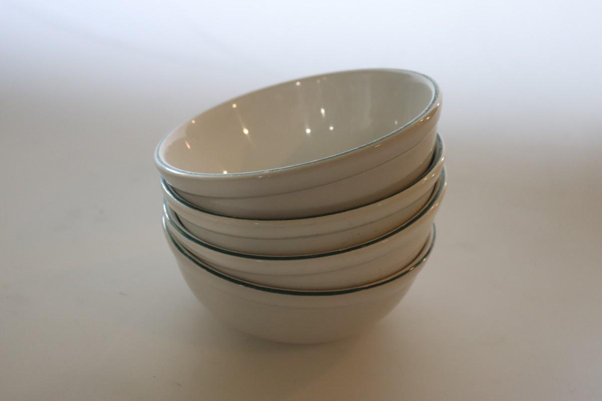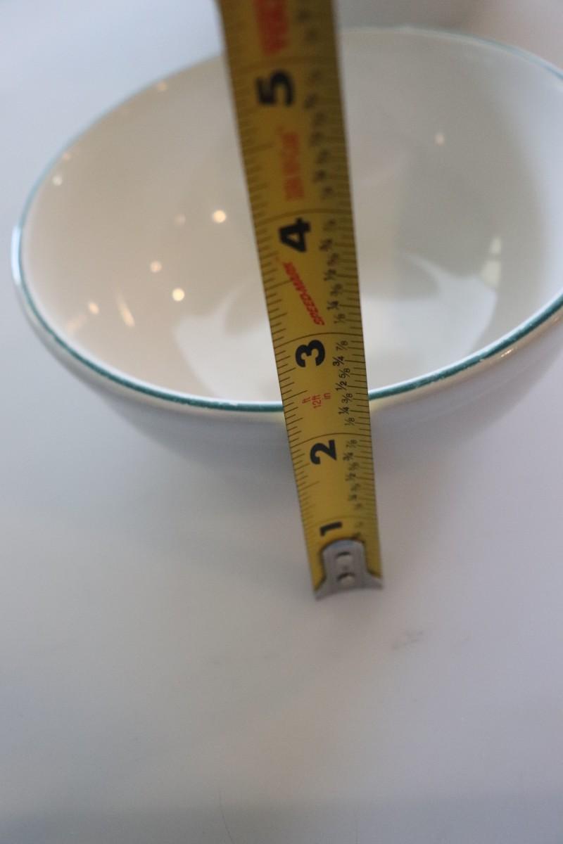 This lot includes a set of -Cubson bowls featuring a distinct green rim design. These bowls are perfect for serving a variety of dishes, from salads to desserts,