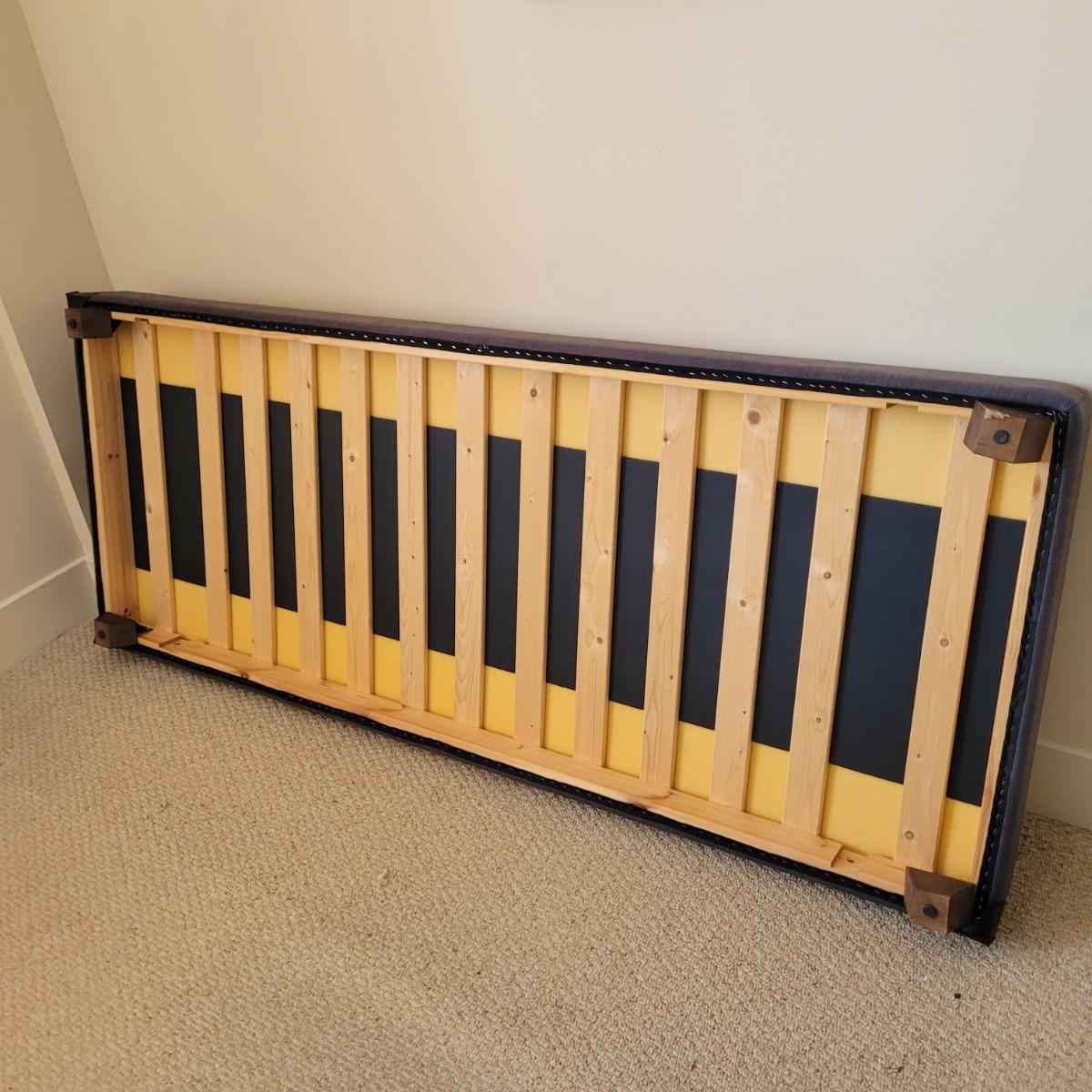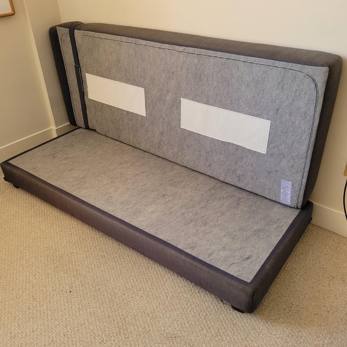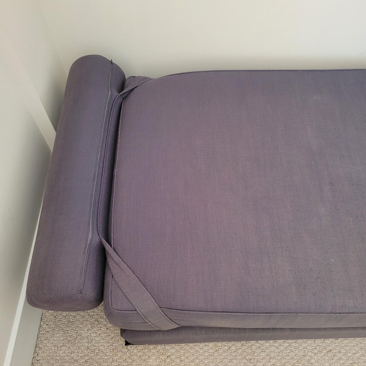 This lot includes one Lubi brand "Luna" style daybed. The bed comes in a graphite color. It is two separate pieces. One top piece with mattress and attached pillow, and a lower portion with support and feet. This bed sold at retail for $1,100 in 2012 and includes original receipt. The bed measures 77" x 32" x 17"H.