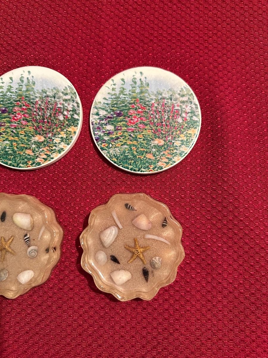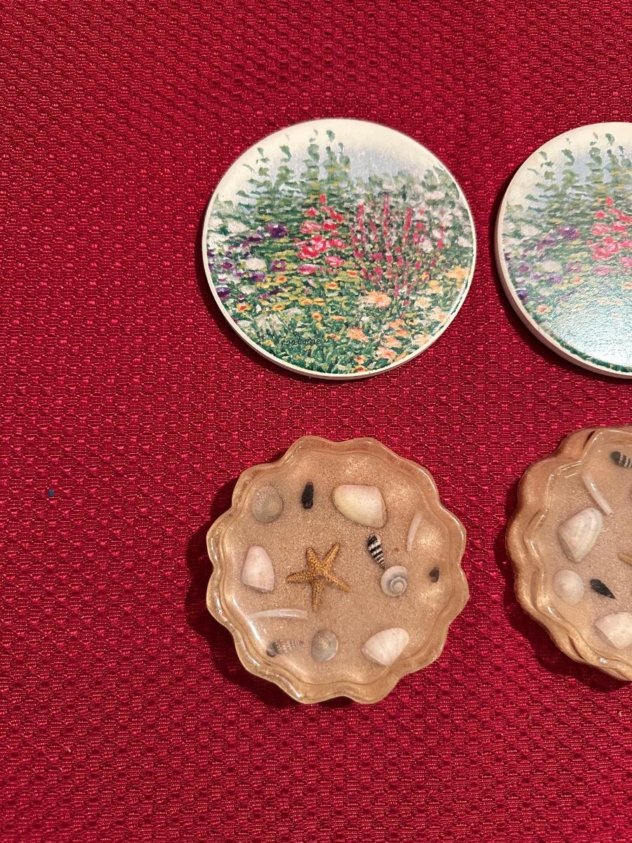 LUCITE AND FLORAL COASTERS