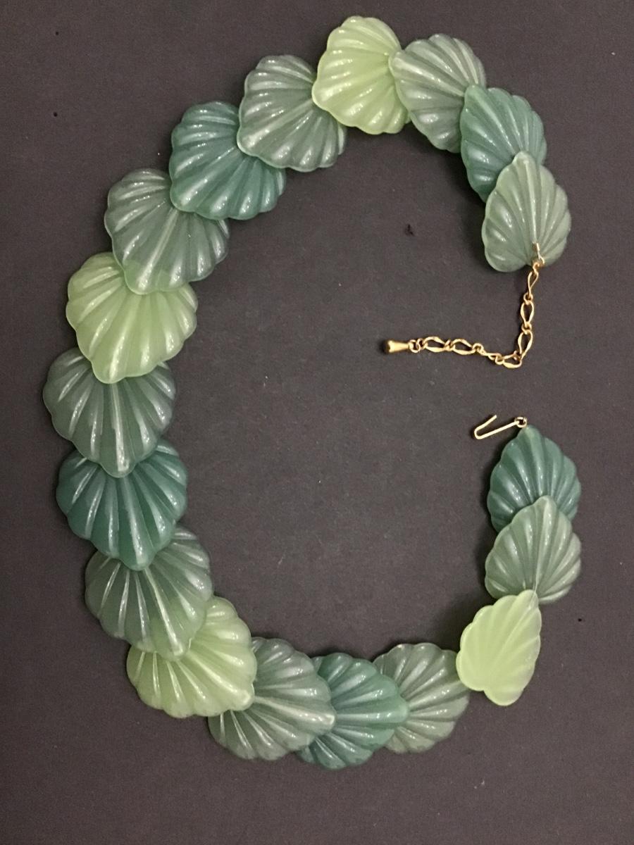 Lucite Green Embossed Leaf Necklace