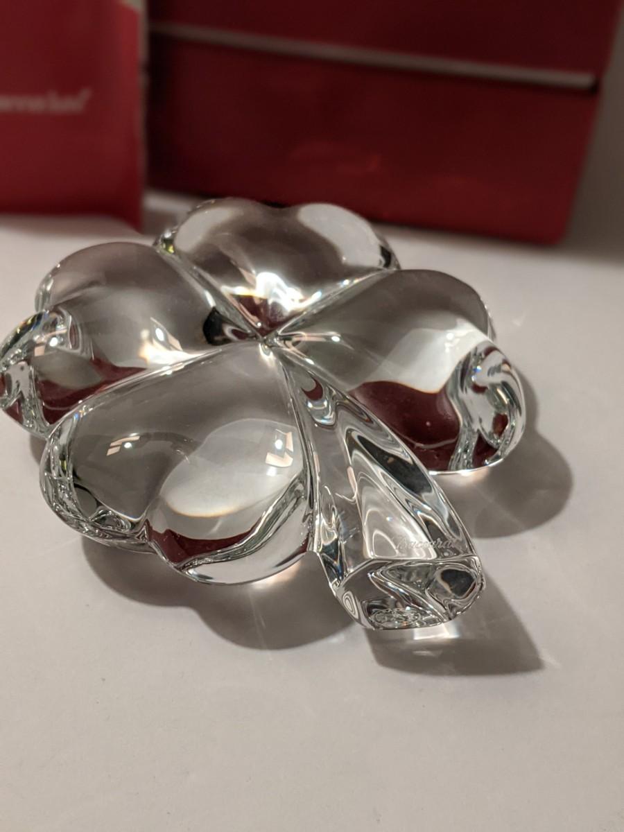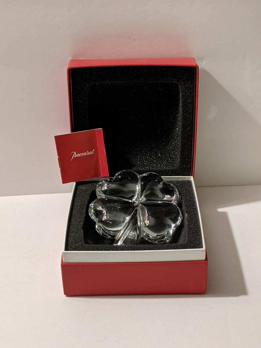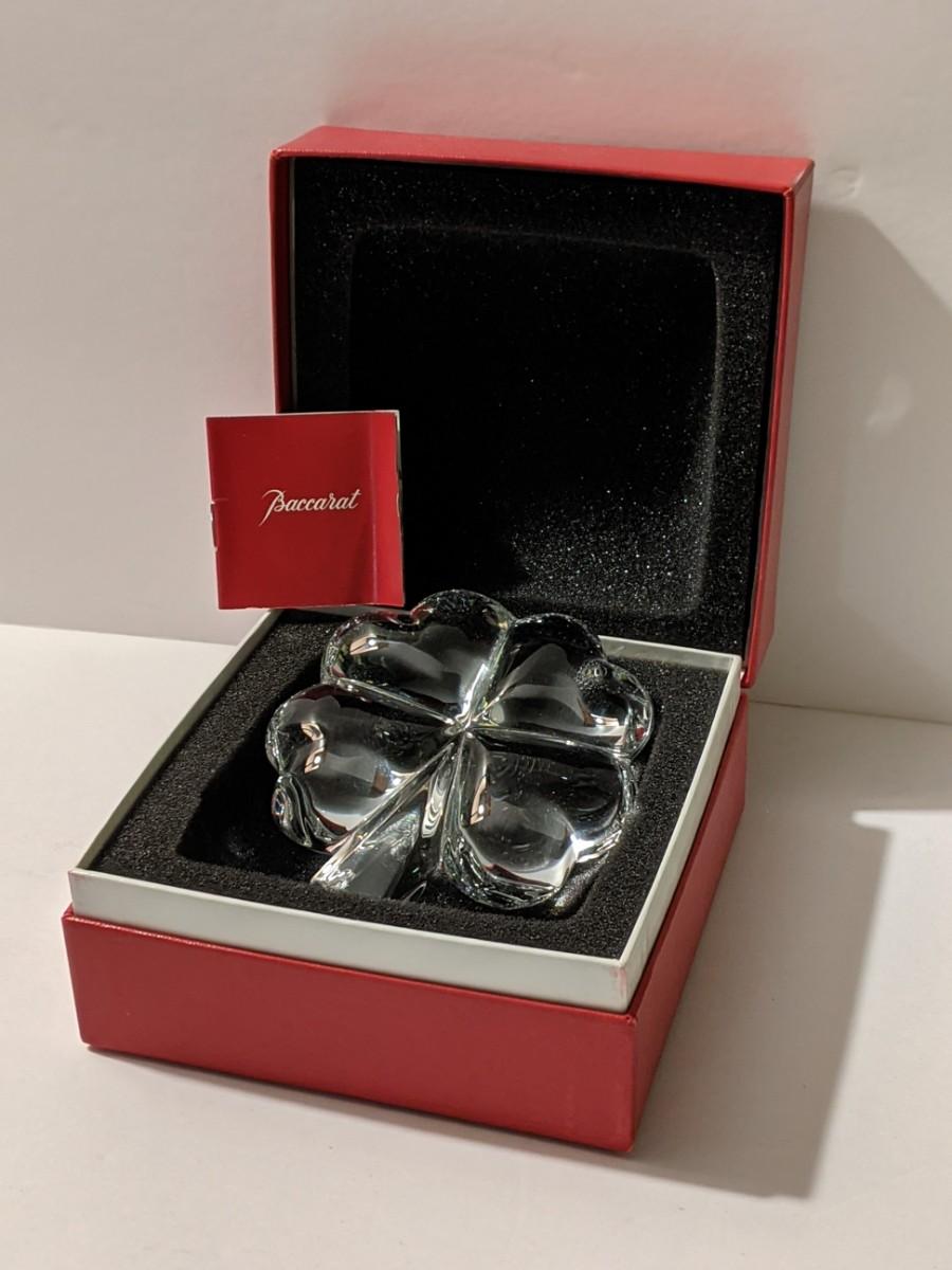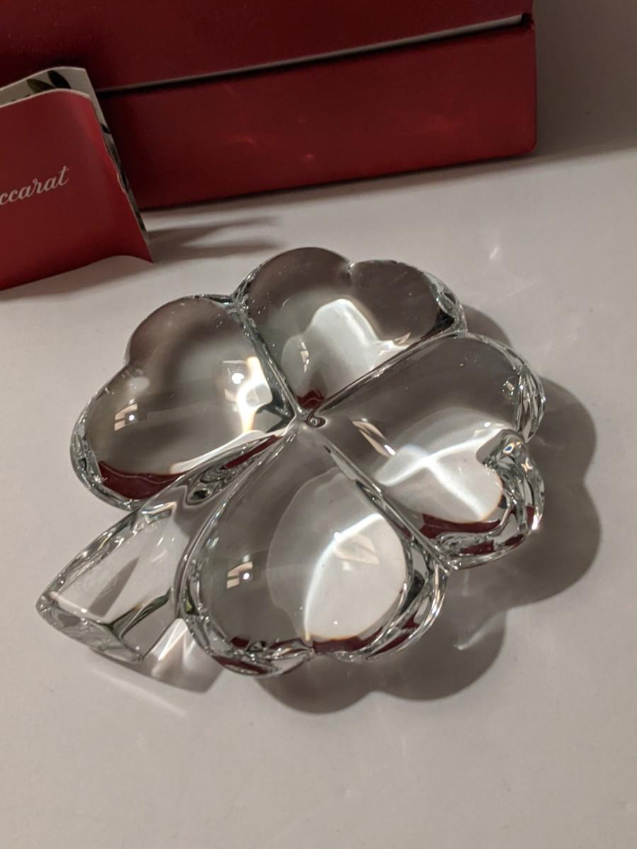 Lucky Baccarat Crystal Four Leaf Clover Paperweight