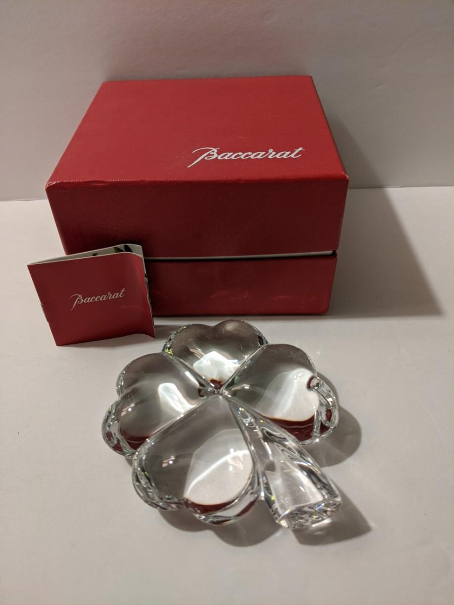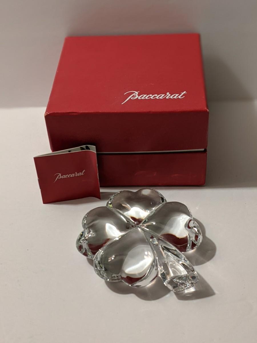 Lucky Baccarat Crystal Four Leaf Clover Paperweight in excellent vintage condition. This piece comes with its original box. It has no chips, scratches or cracks. This piece is the perfect addition to any collection or as a gift. It is approximately 4 1/8” inches tall.