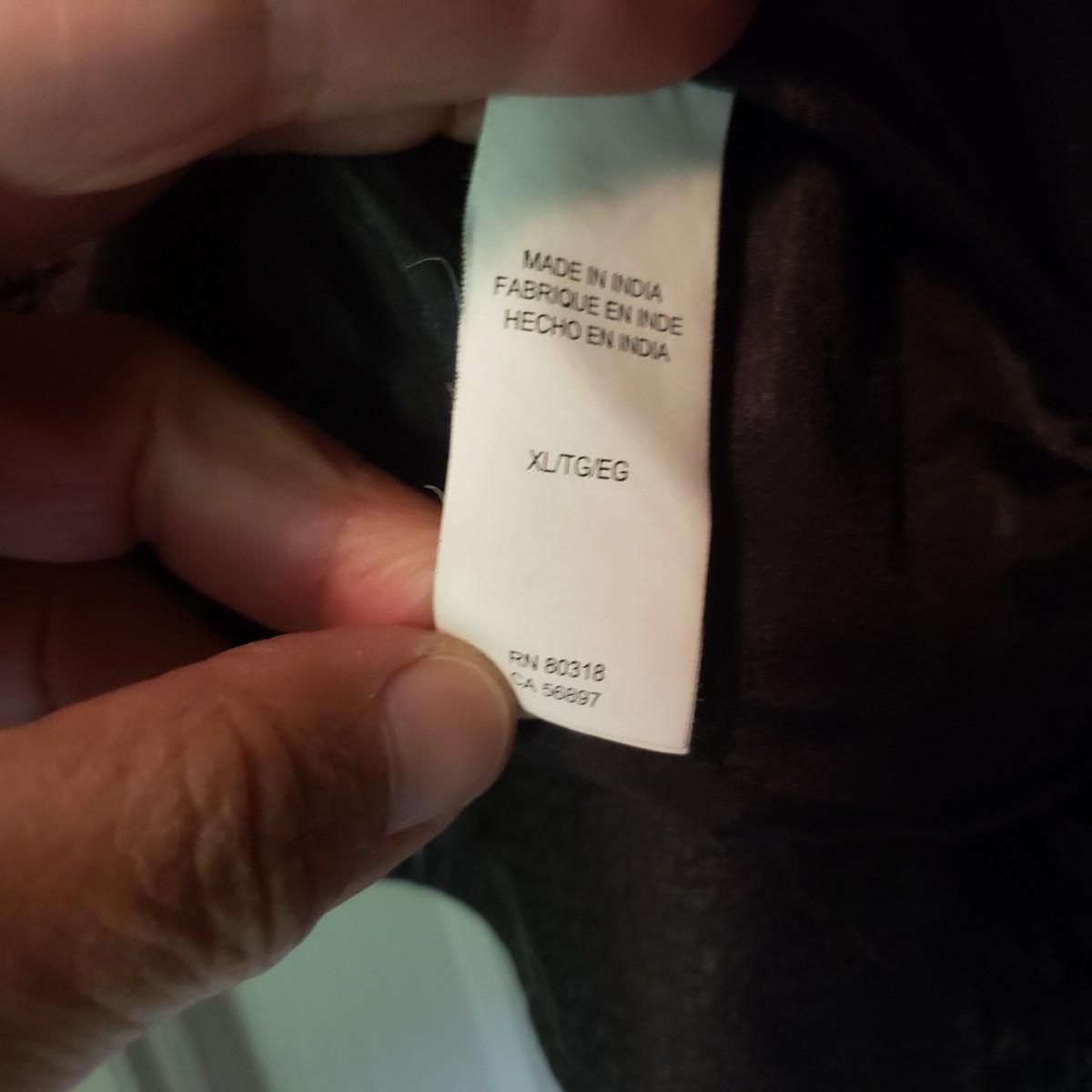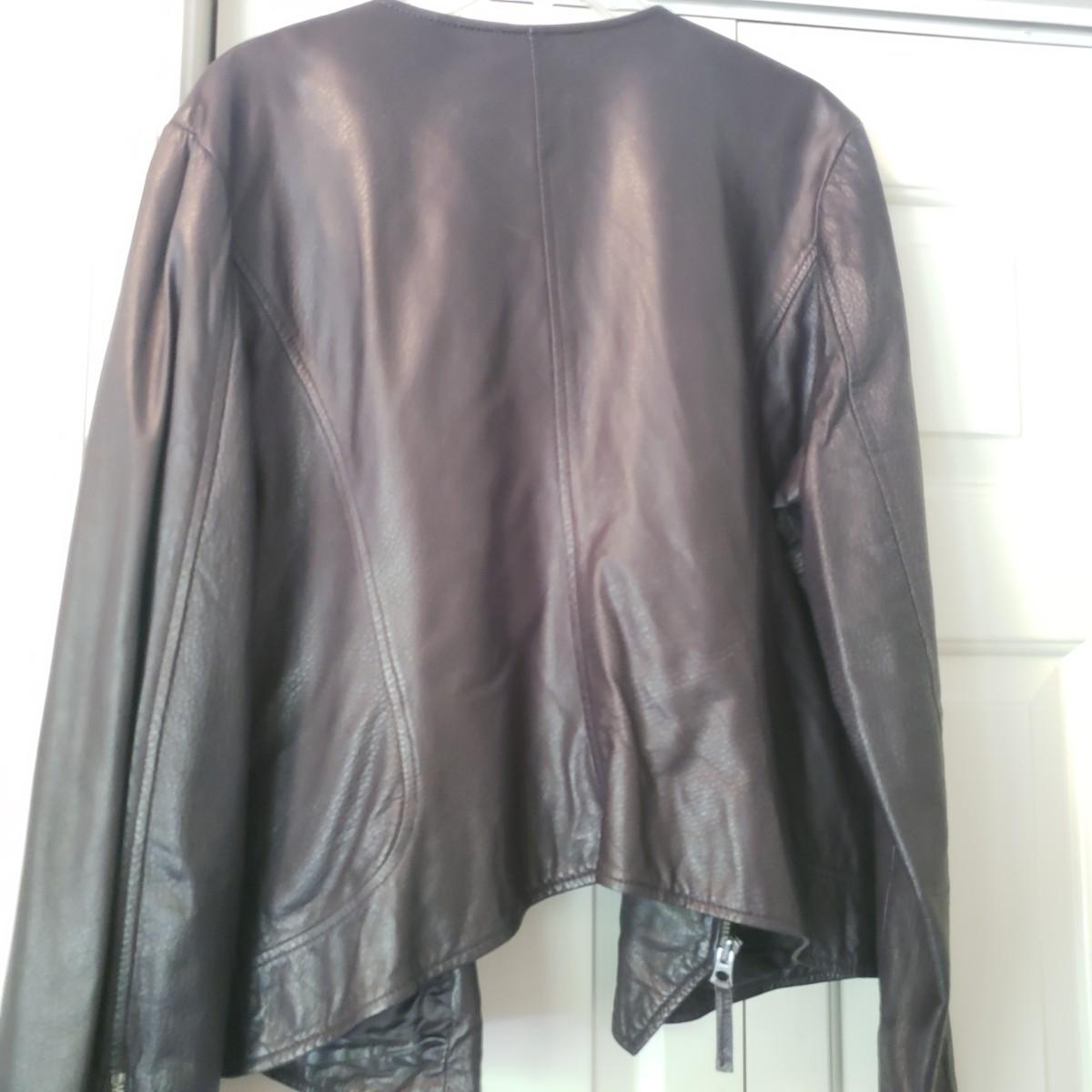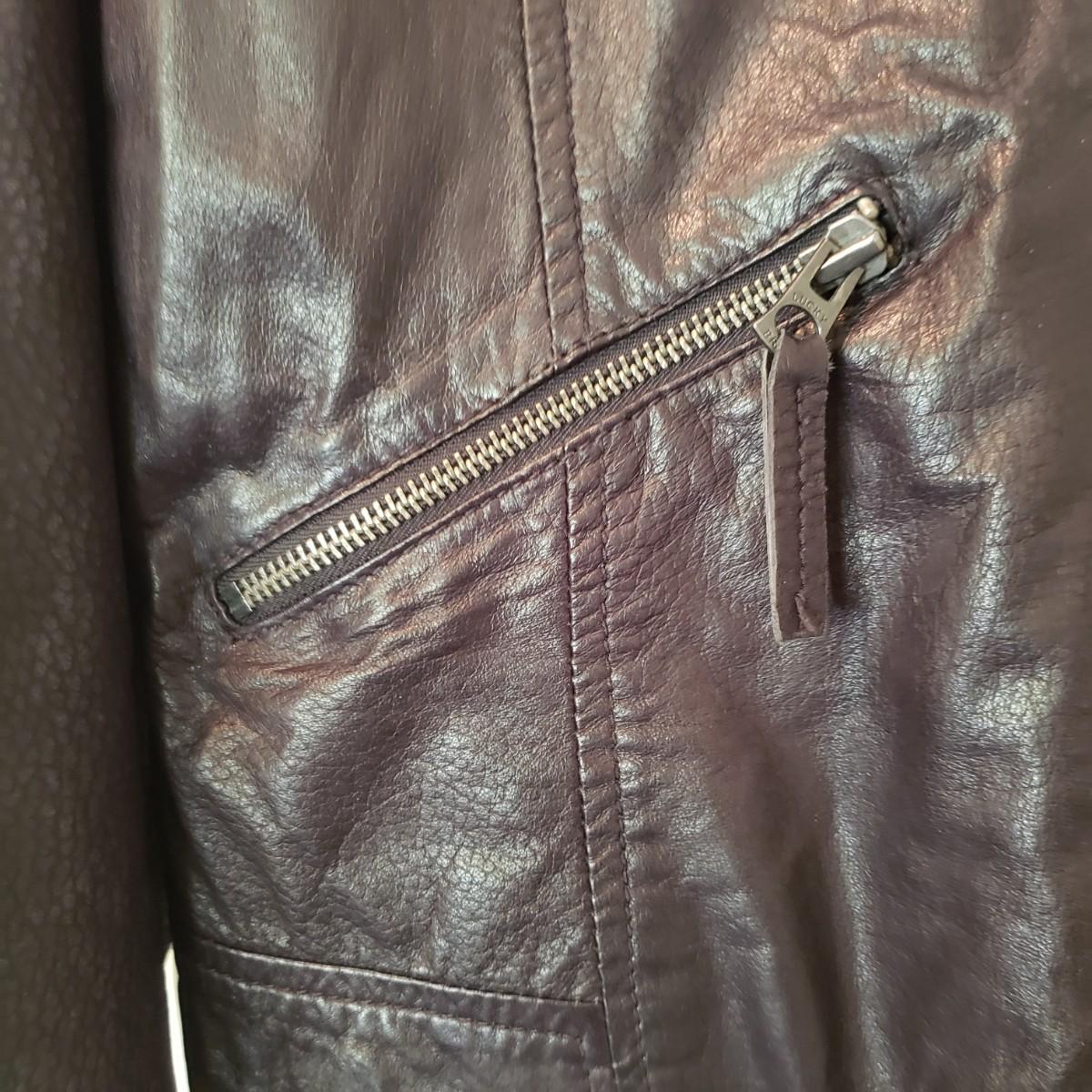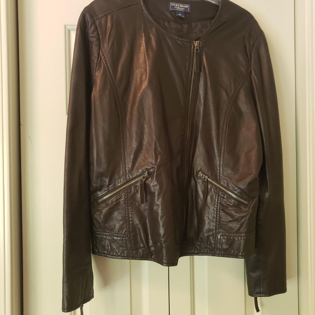 This is an XL Lucky Brand black leather coat. The leather is very soft. It has zippers on the end of the sleeves and two pockets with zippers.