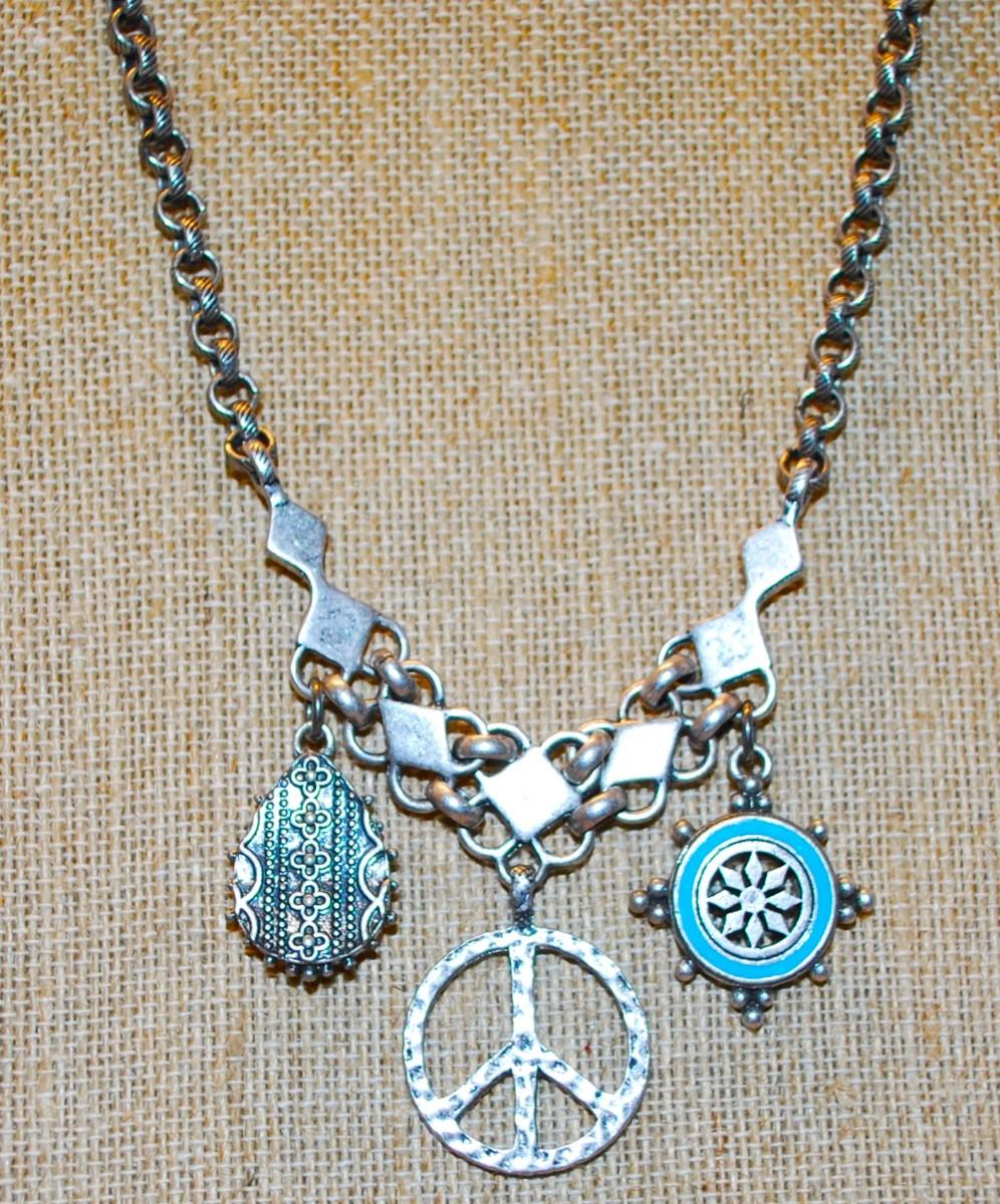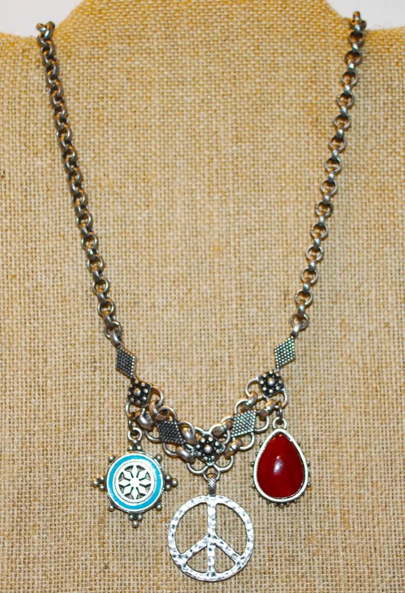 "LUCKY BRAND" Necklace with 3 Pendants on a Dark Silver Tone Chain 14" L