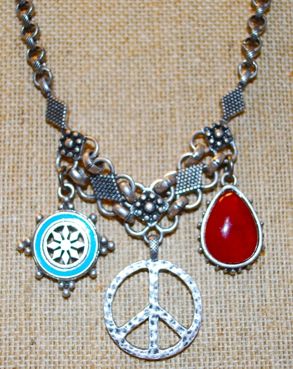 "LUCKY BRAND" Necklace with 3 Pendants on a Dark Silver Tone Chain 14" L