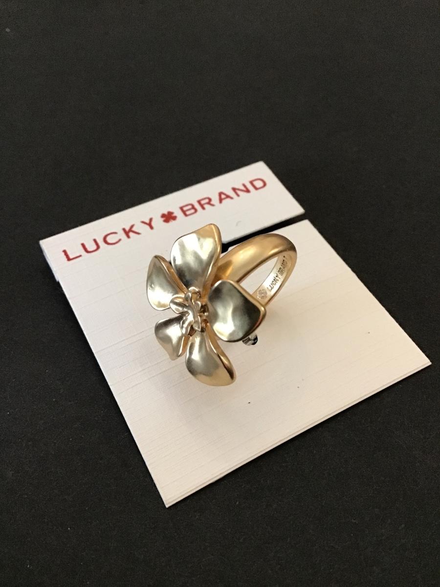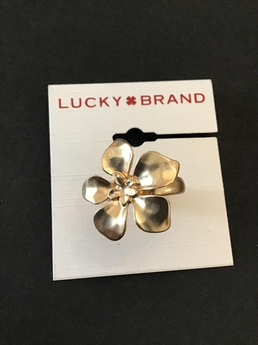 Lucky brand satin, gold toned, flower fashion, ring size 7