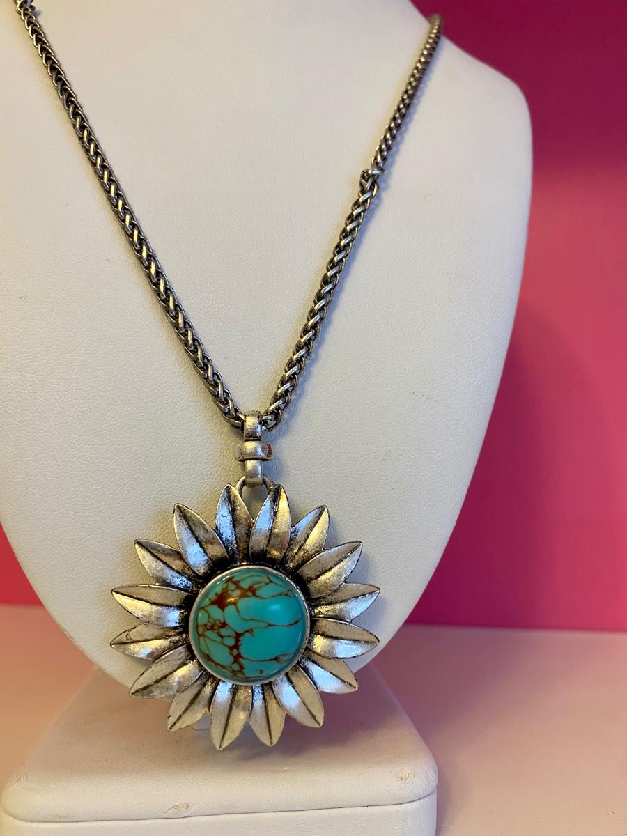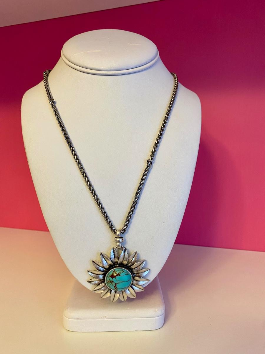 Lucky Brand Silver Tone Turquoise Sunflower Pendant Necklace