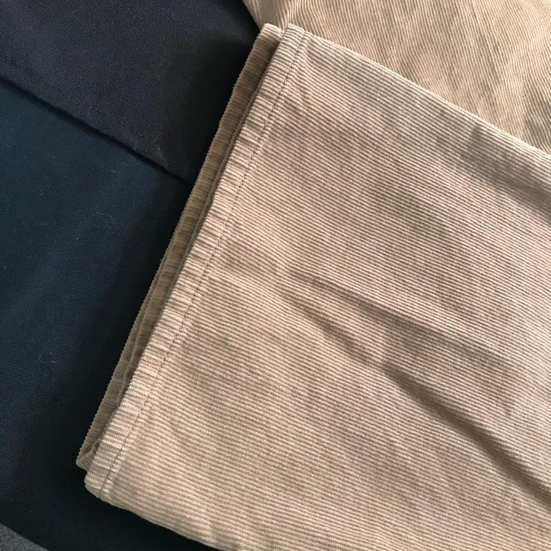 One pair of dark tan Lucky Brand corduroy pants. The fit is labeled 361 Vintage Straight. They are in good used condition with no fraying around the cuffs. See pictures.